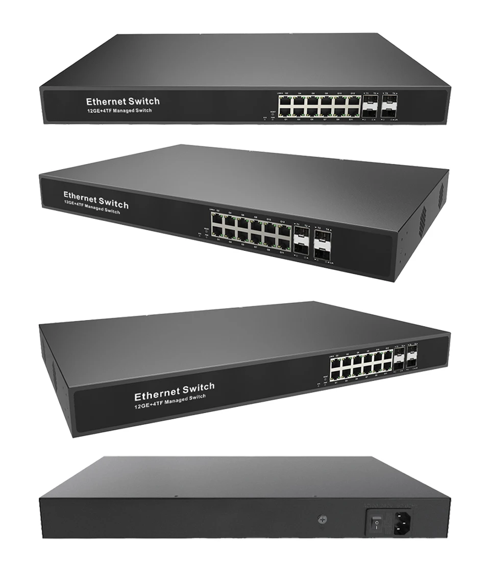 Conmutador administrado JT-COM L3 con puertos de ranura 4*1/10G SFP+ y puertos RJ45 de 12*100/1000M
