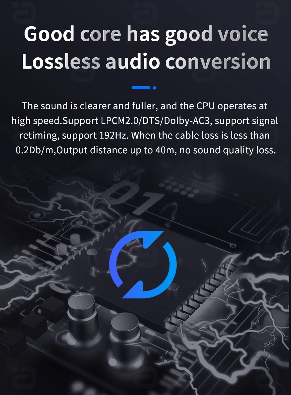 La pérdida del cable óptico utilizado es inferior a 0,2Db/M, y la distancia de salida puede alcanzar los 40m sin pérdida de calidad.