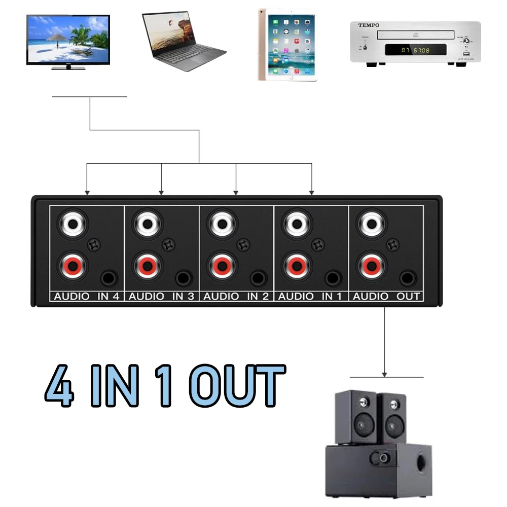 Comprar Conmutador de Audio RCA AUX 4 en 1, selector de Audio estéreo 4X1, pastivo, 3,5mm, Aux L/R, caja de interruptor de audio RCA, selector de audio analógico