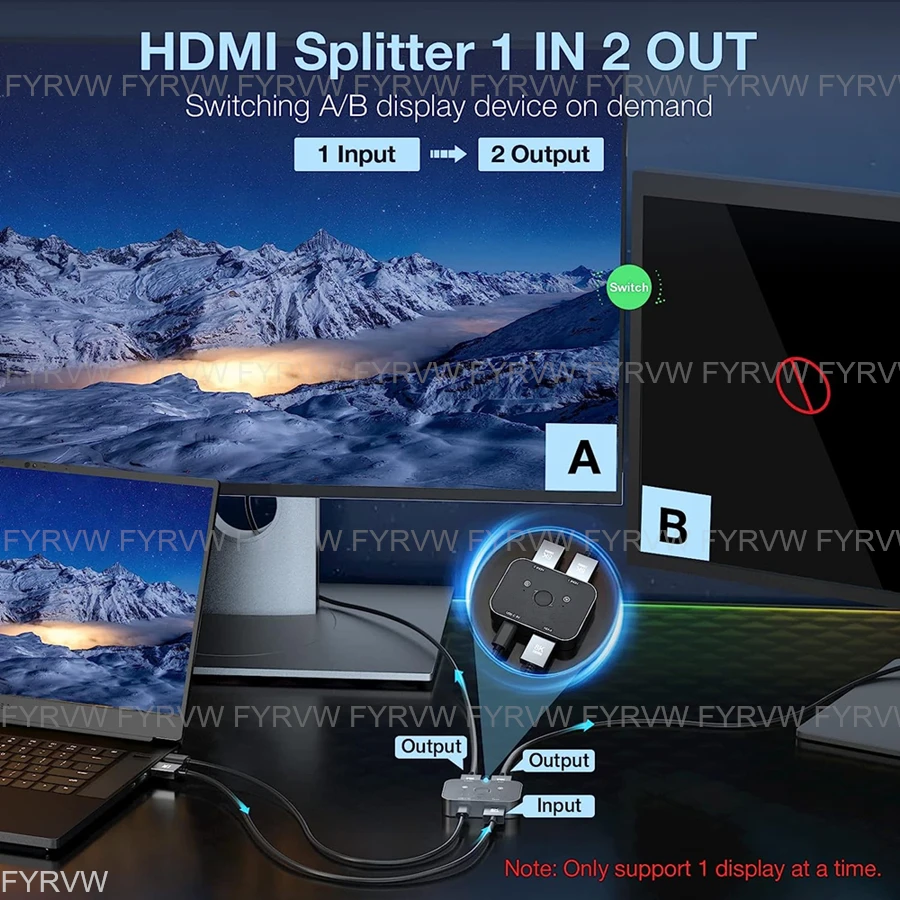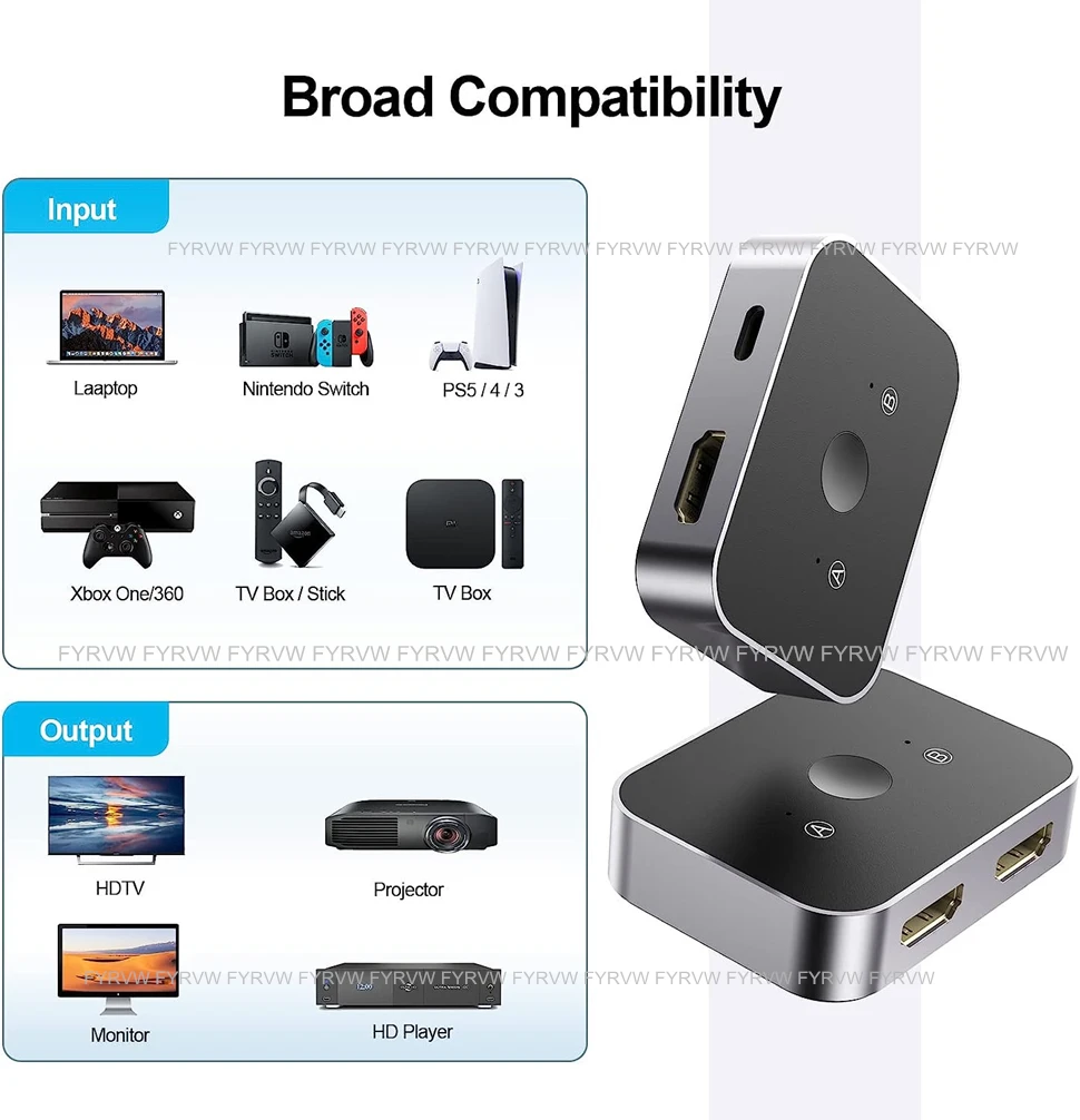 Adaptador conmutador 2,1 HD compatible con HDMI 4K 120Hz 1x2 8K 60Hz 2x1 divisor convertidor bidireccional para interruptor PS4