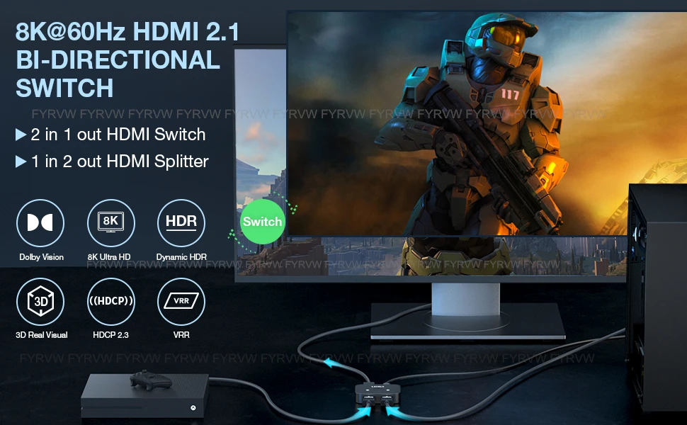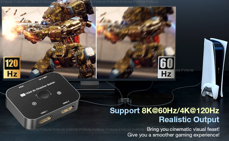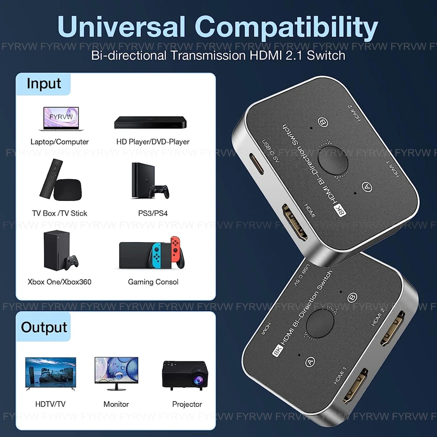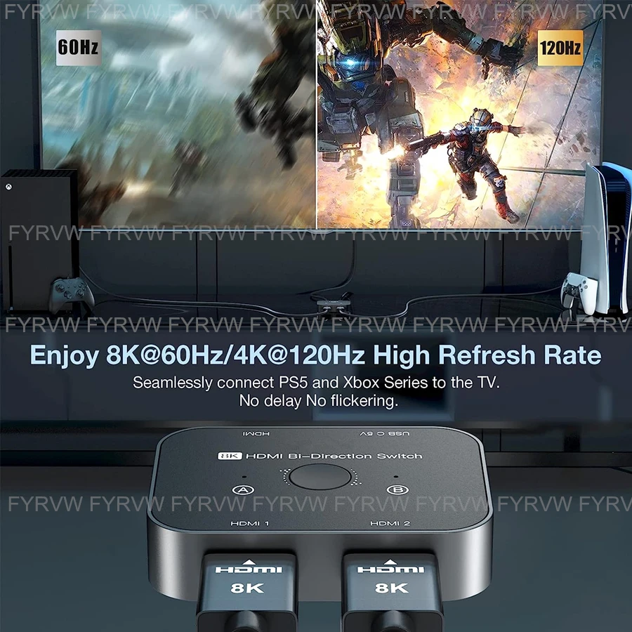 Comprar Conmutador bidireccional 2 en 1 compatible con HDMI 8K, convertidor bidireccional 4K 120Hz para PS5, adaptador divisor Compatible con HDMI