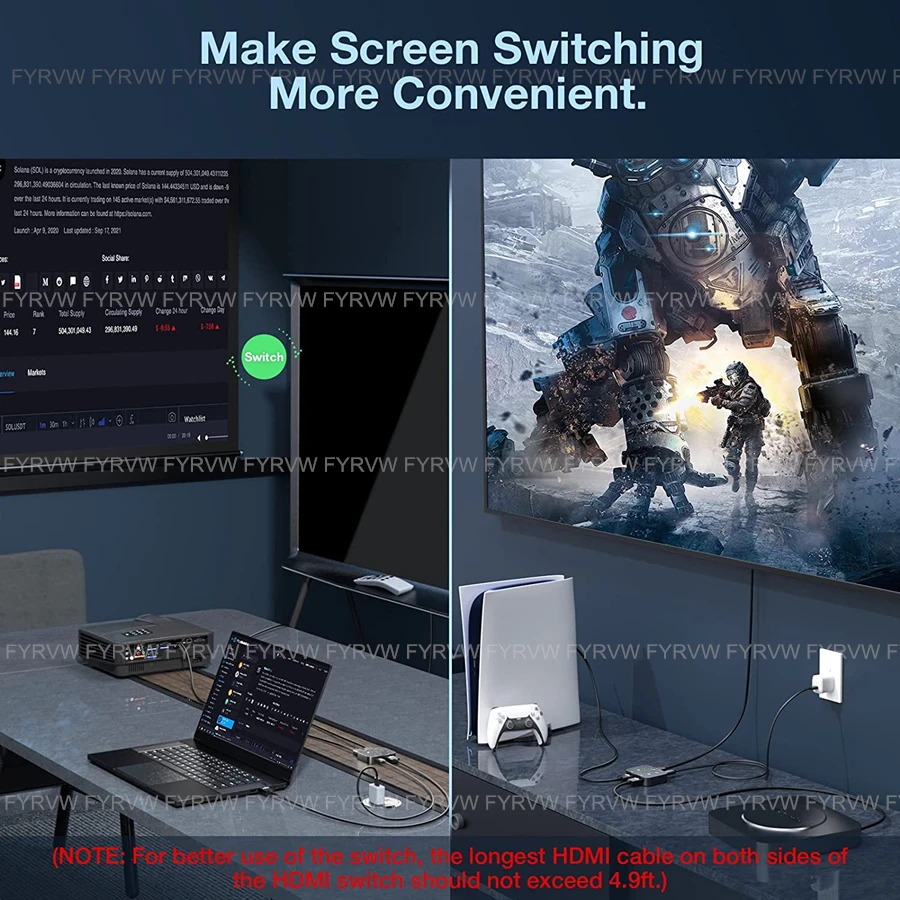 4. Interruptor de llave: Presione fácilmente el interruptor para cambiar a otro dispositivo para trabajar, resolviendo el problema de la interfaz de Alta Definición compatible con HDMI insuficiente del dispositivo.