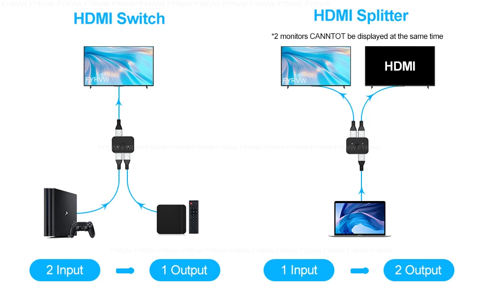 1. Conmutador bidireccional compatible con HDMI, 2 en 1 salida/1 en 2 salida.