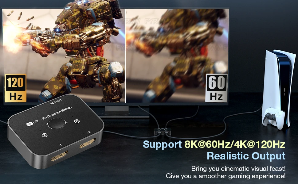 Comprar Conmutador bidireccional 8K Compatible con HDMI, conmutador 8K @ 60Hz 4K @ 120Hz 1080P @ 240Hz para PS5 HDMTV, adaptador divisor HDTV