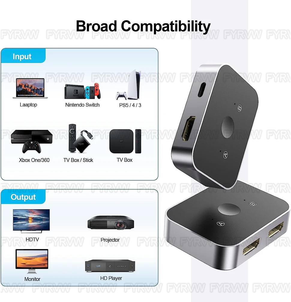 Adaptador conmutador 2,1 HD compatible con HDMI 4K 120Hz 1x2 8K 60Hz 2x1 divisor convertidor bidireccional para interruptor PS4