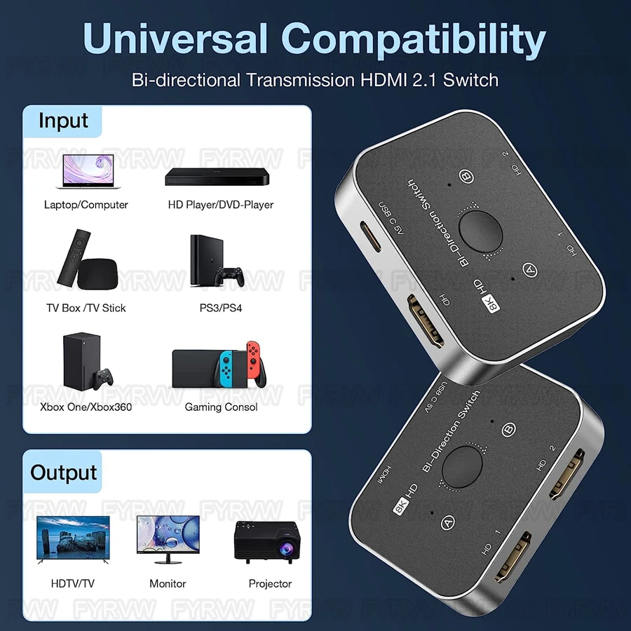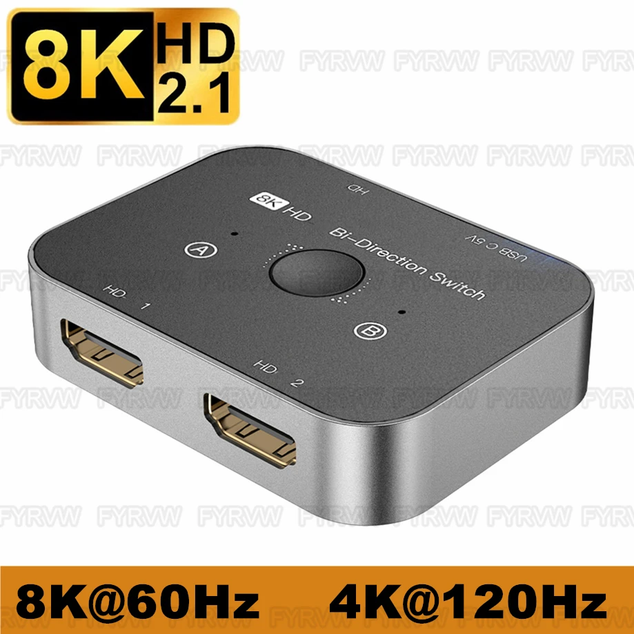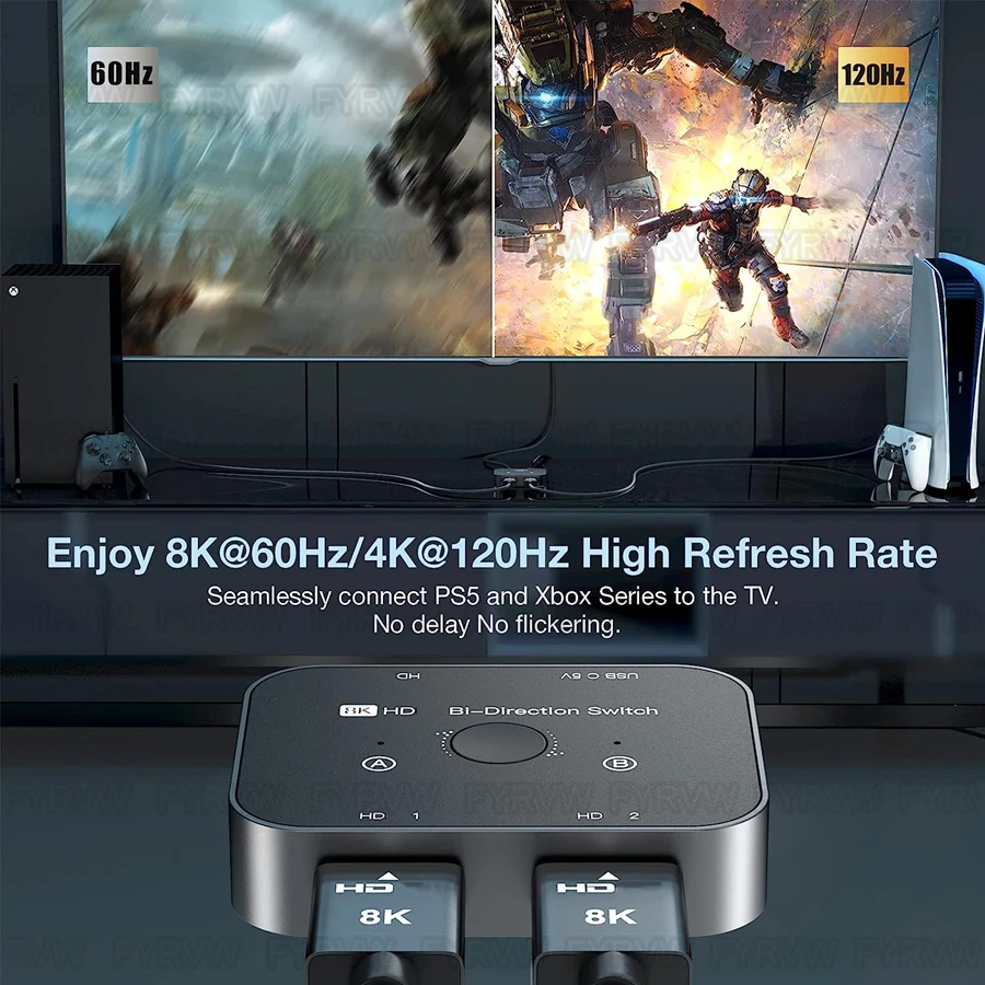 Comprar Conmutador bidireccional 8K Compatible con HDMI, conmutador 8K @ 60Hz 4K @ 120Hz 1080P @ 240Hz para PS5 HDMTV, adaptador divisor HDTV