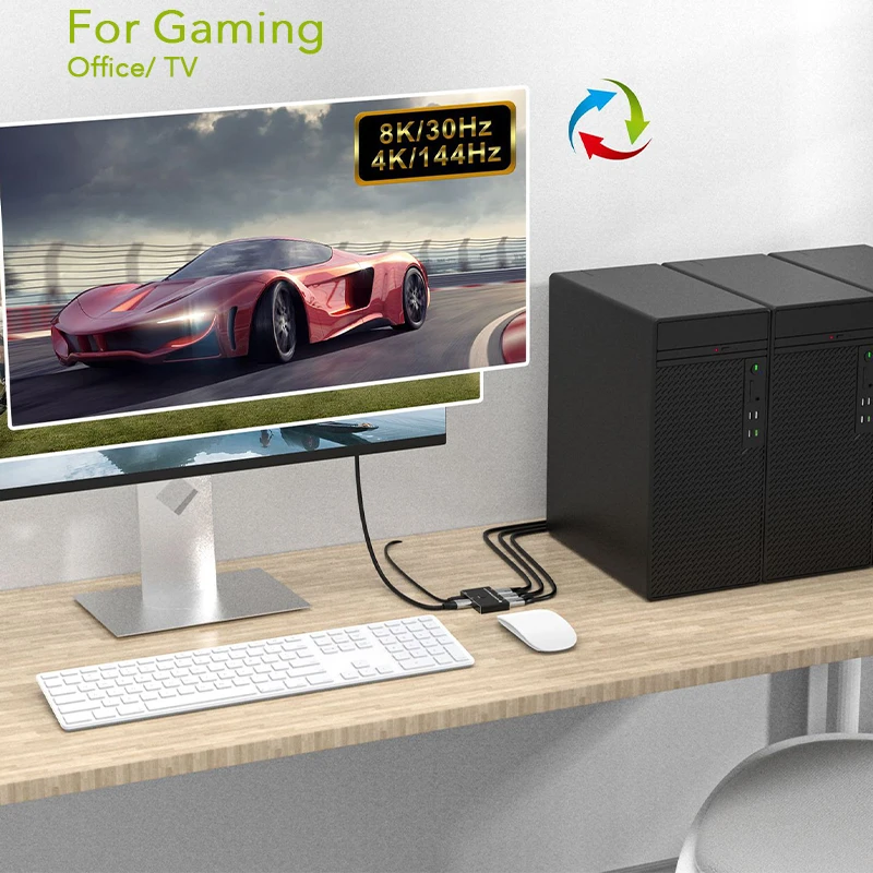 Comprar Conmutador bidireccional DisplayPort 1x3/3x1, 8K @ 60Hz, divisor de 3 puertos, convertidor DP 1,4 4K @ 144Hz para interruptor de pantalla de múltiples fuentes