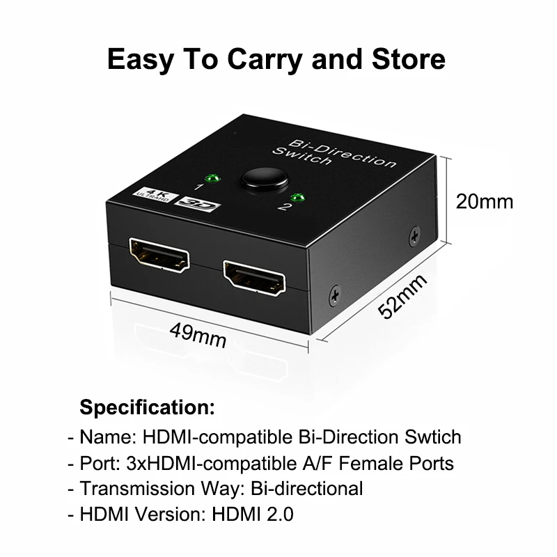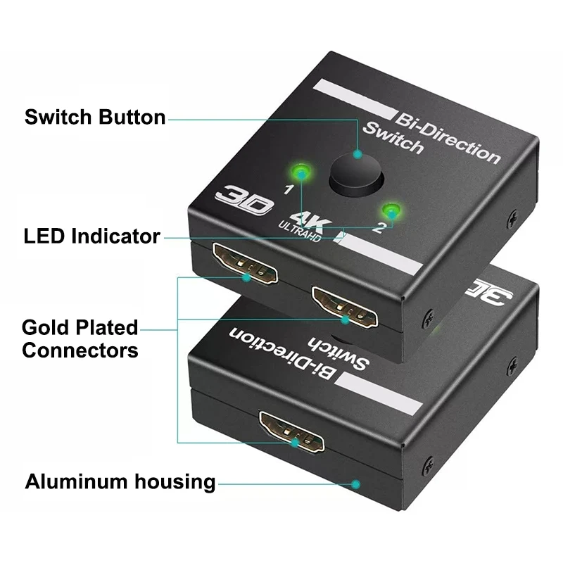 No power supply, plug and play Bi-directional Hdmi-Compatible Switch Splitter