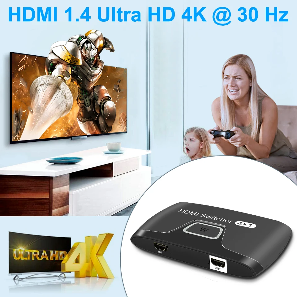 Conmutador HDMI 1.4 compatible con HDR 4K 30Hz conmutador compatible con HDMI 4 en 1 salida con divisor de interruptor remoto compatible con HDMI para PS5 PS4 pro Apple TV