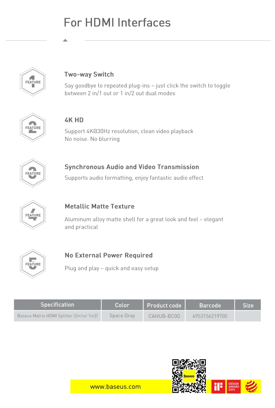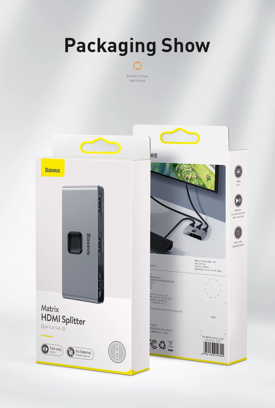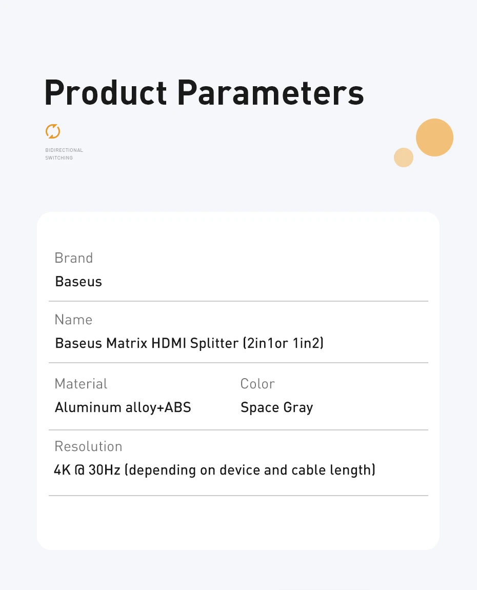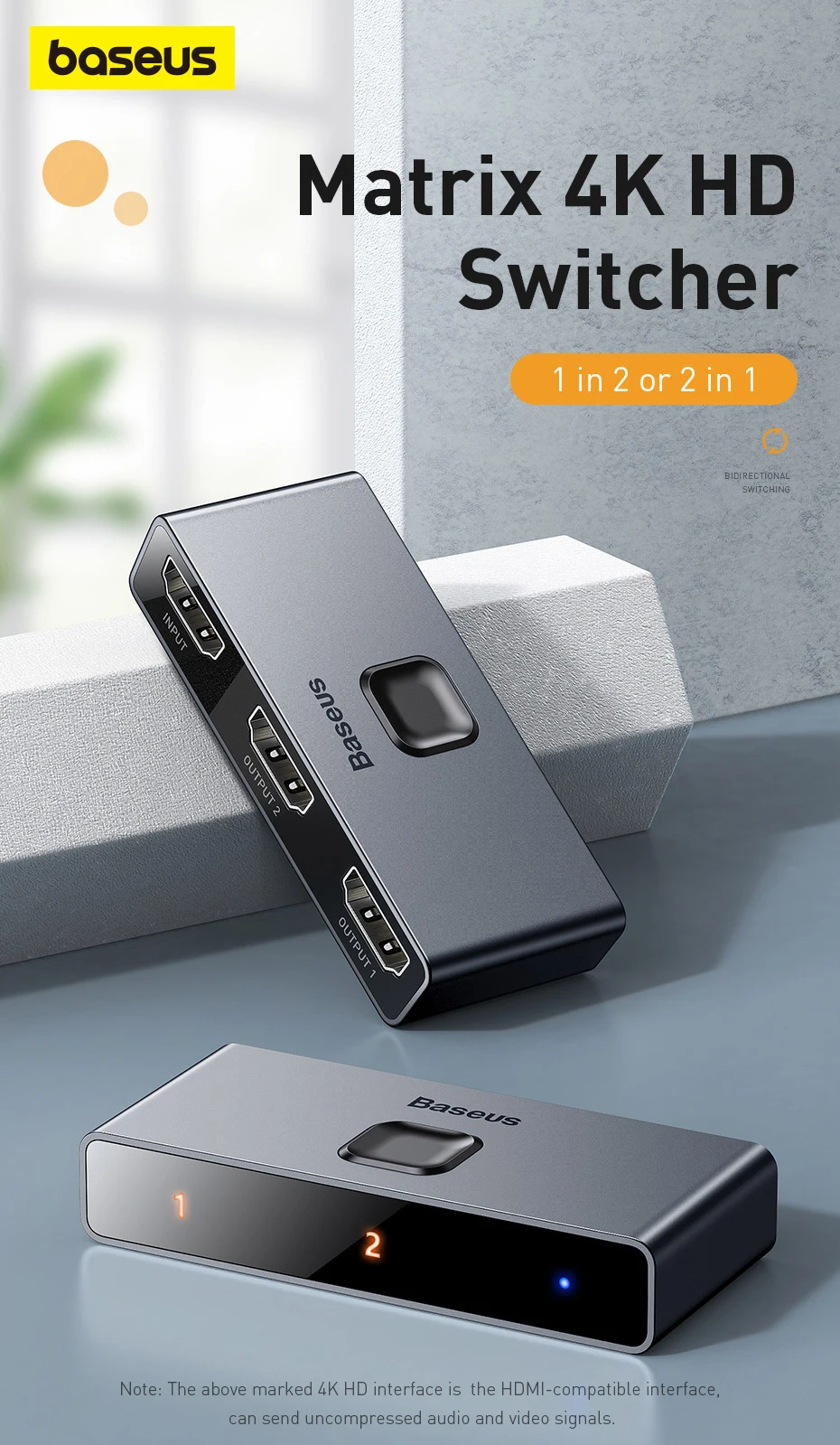 Comprar Conmutador compatible con HDMI Baseus 4K 60Hz adaptador de Audio bidireccional 1x2/2x1 HDR para PS4 TV Box 4K HD conmutador compatible con HDMI
