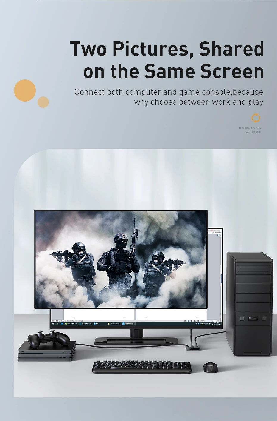 Adecuado para computadora, decodificador, monitor, interruptor/PS4, TV y proyector.