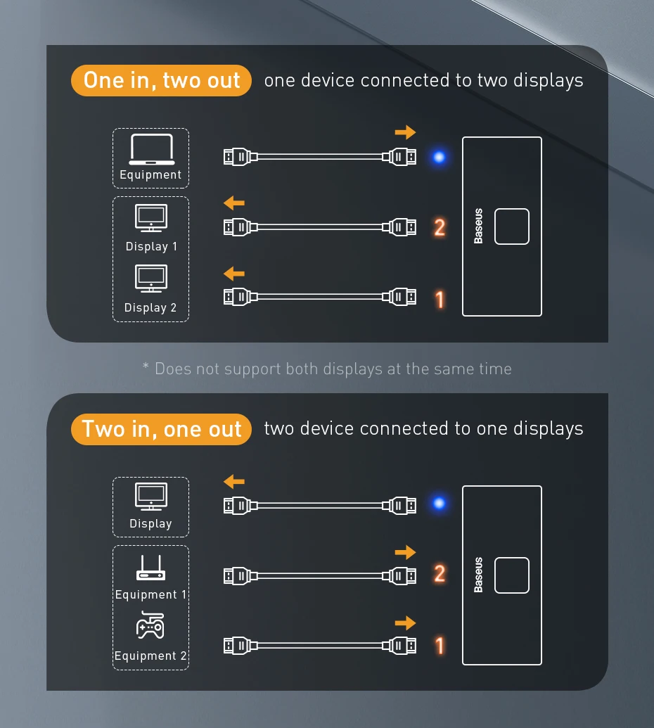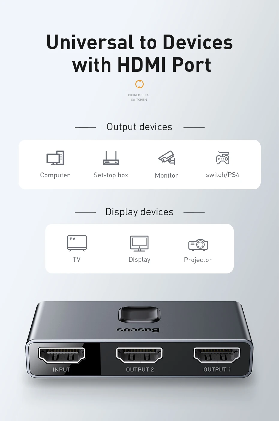 Comprar Conmutador compatible con HDMI Baseus 4K 60Hz adaptador de Audio bidireccional 1x2/2x1 HDR para PS4 TV Box 4K HD conmutador compatible con HDMI