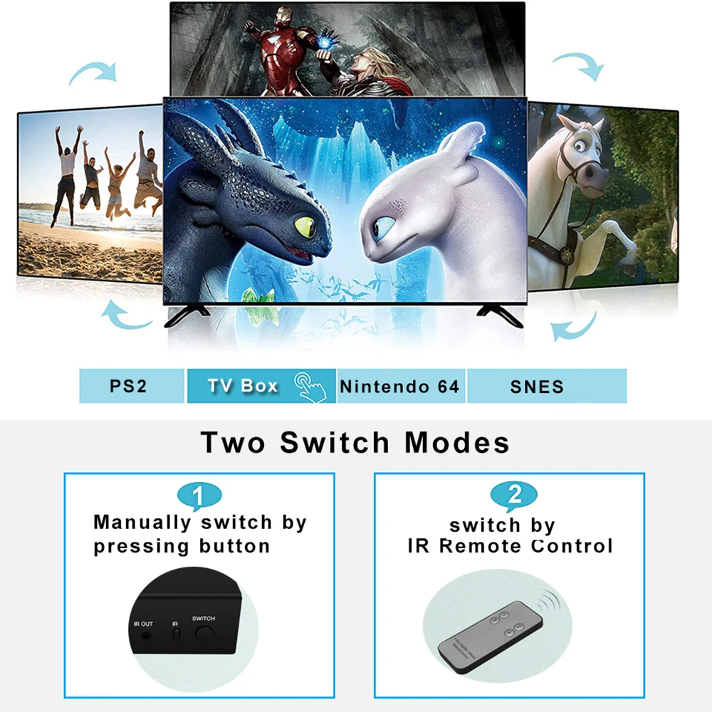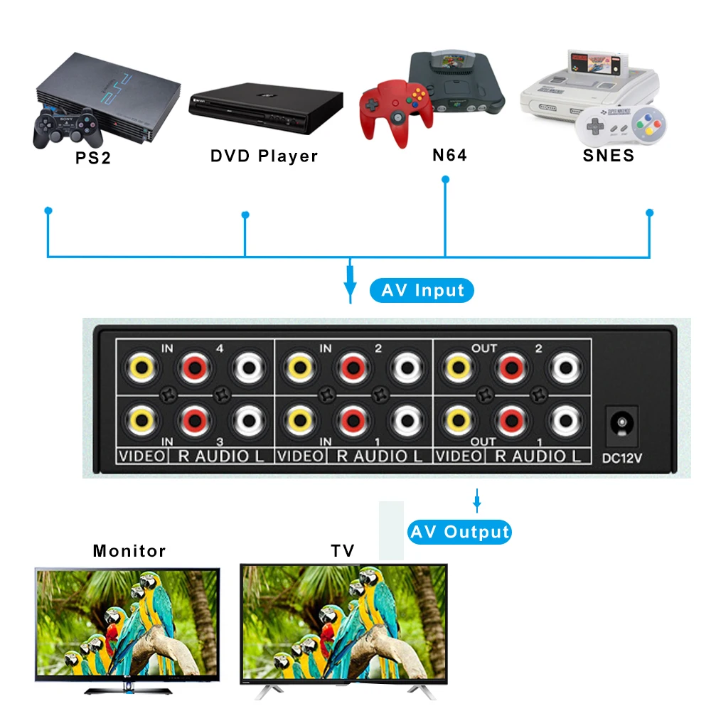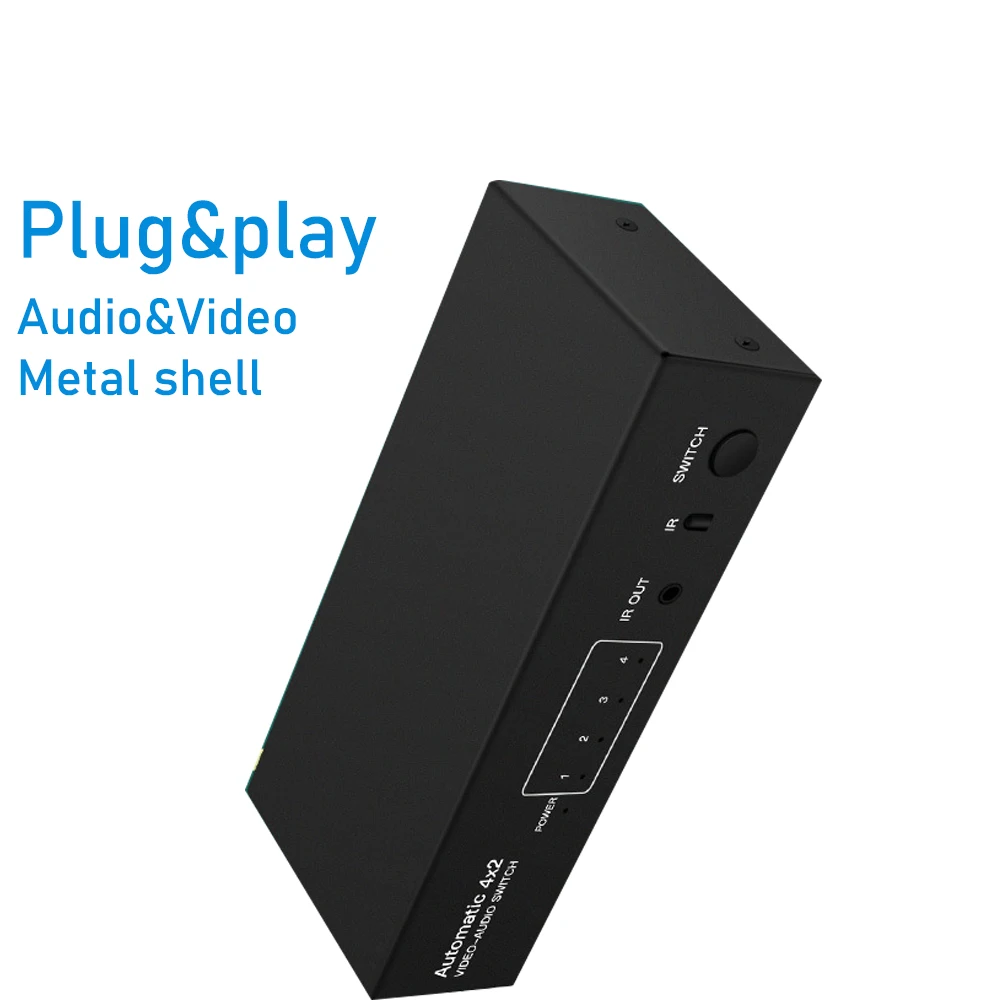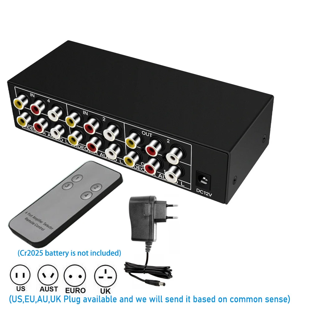 Comprar Conmutador compuesto AV RCA 4 en 2, C-VBS de vídeo analógico, 4X2, con mando a distancia para DVD, Wii, PS2 y TV