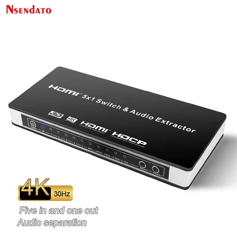 Conmutador HDMI 5x1 Extractor de Audio HDMI 4K x 2K arco 3D R/L Selector de Audio EDID 1,4 v interruptor HDMI con control remoto IR para PS4 HDTV
