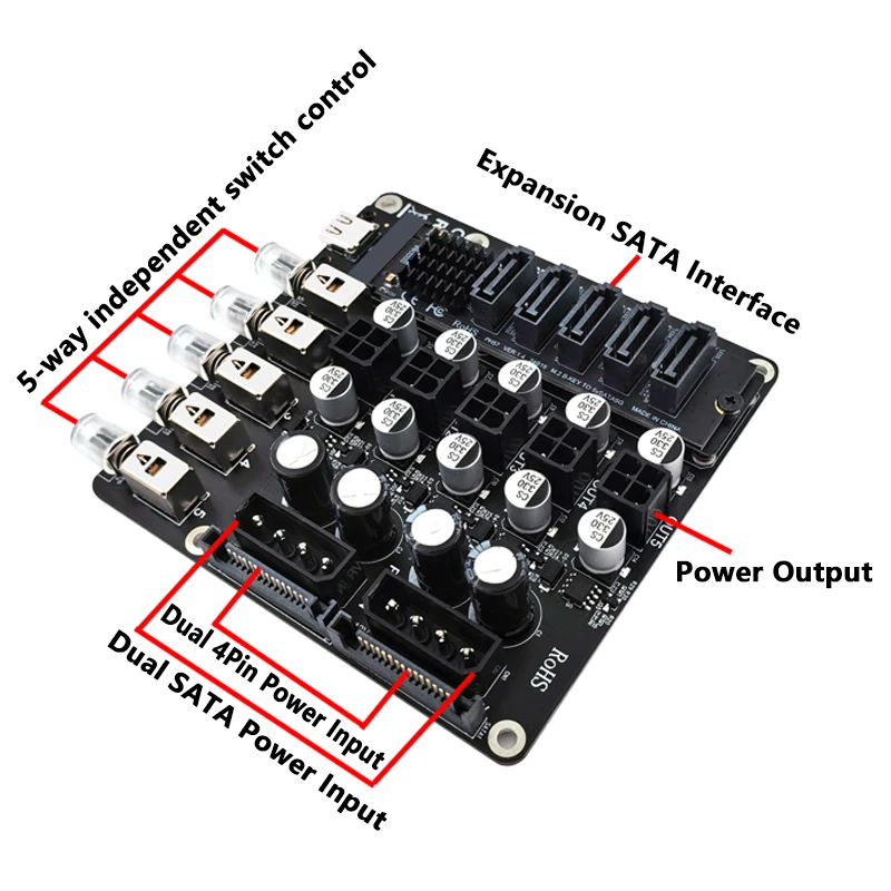 Conmutador de control de energía 2x sata + 2x 4pin a ATX Quad para HDD CD-ROM 4pin 5/12V fuente de alimentación adaptador de módulo de placa de ruptura