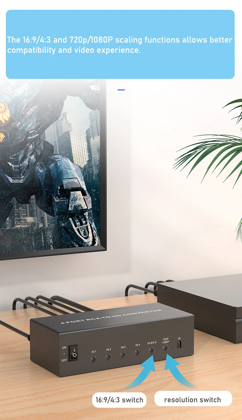 1) El artículo que aparece es un convertidor de interruptor compuesto AV a HDMI 4 en 1. No puede funcionar de otra manera.