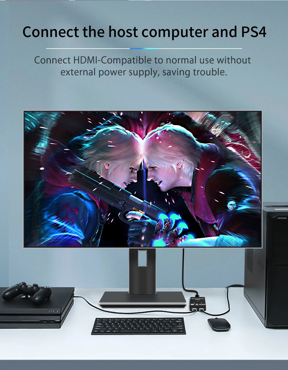 Comprar Conmutador divisor Compatible con HDMI 4K bidireccional 1x2/2x1 KVM para TV Box PS4/3, adaptador de conmutador, entrada Dual, salida única