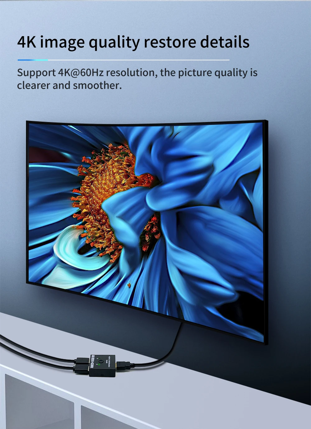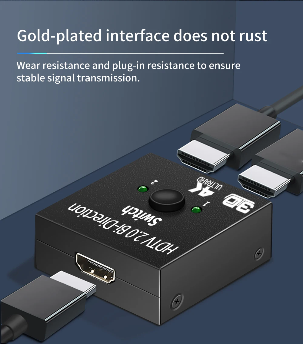 RESOLUCIÓN 4K SOPORTE:Admite 4K x 2K@30hz, resolución 3D 1080P y audio HD.Con este conmutador Compatible con HDMI, podrás disfrutar de los vídeos y audio más lujosos.(Utilice cables 2.0 estándar compatibles con HDMI para conectar su dispositivo compatible con HDMI 4K).