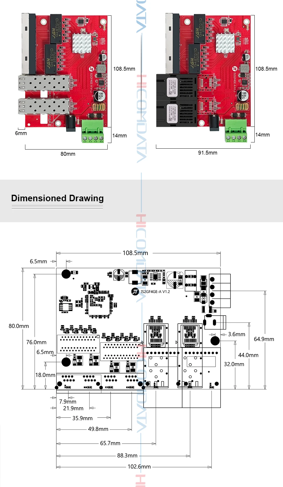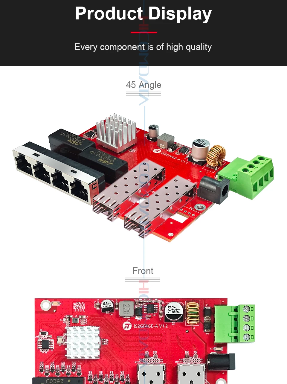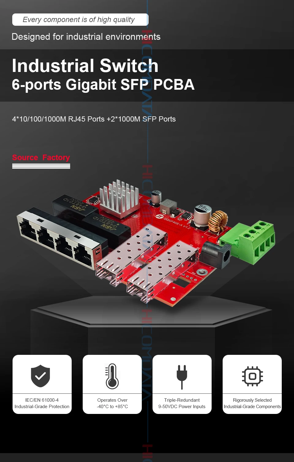 Conmutador Ethernet Gigabit de 6 puertos de grado industrial PCBA con 2 SFP y 4 RJ45-40 ° C~85 ° C Conmutador Ethernet PCBA compatible con OEM/ODM