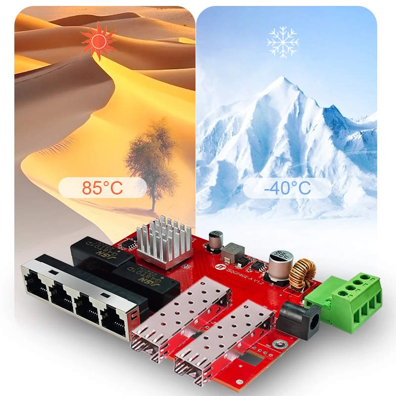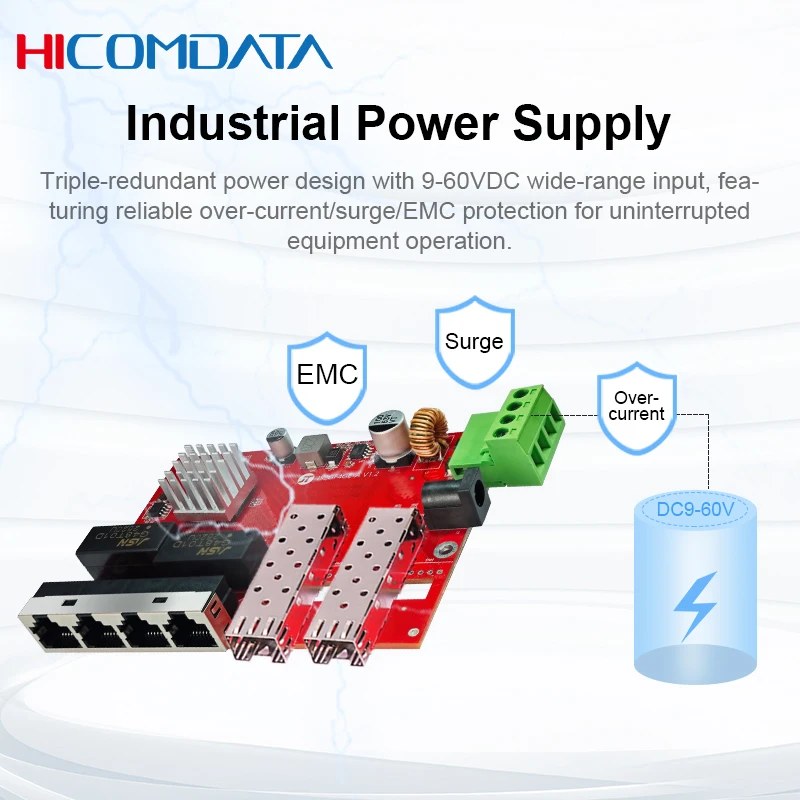 Comprar Conmutador Ethernet HICOMDATA Gigabit de grado industrial 2G4E SFP con 2 puertos SFP de 1000 Mbps + puertos RJ45 de 4*1000 Mbps