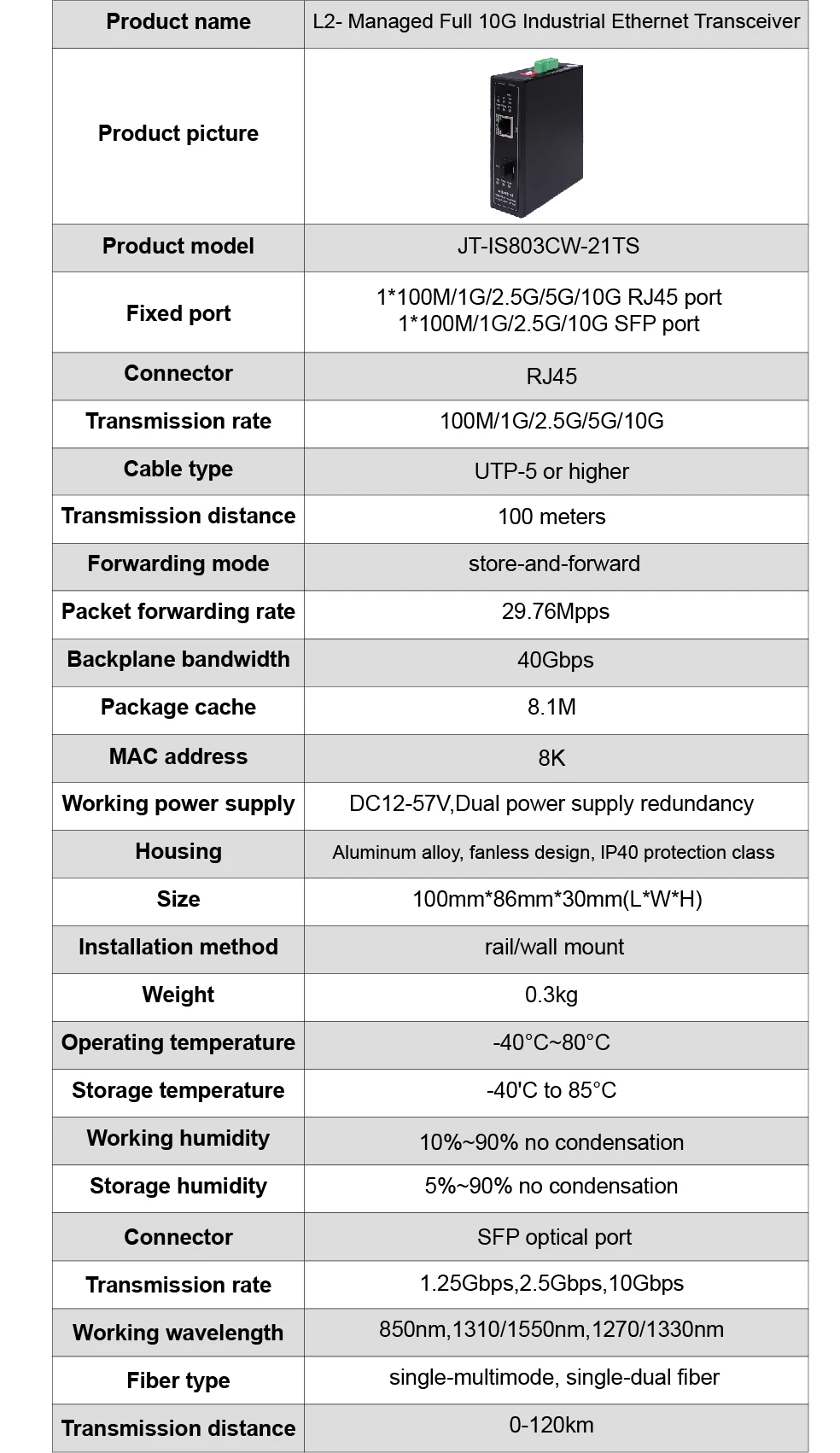 Conmutador Ethernet Industrial Gigabit, 1 puerto, 10000M, 10G, SFP, L2-Managed de enlace ascendente, gestión Web