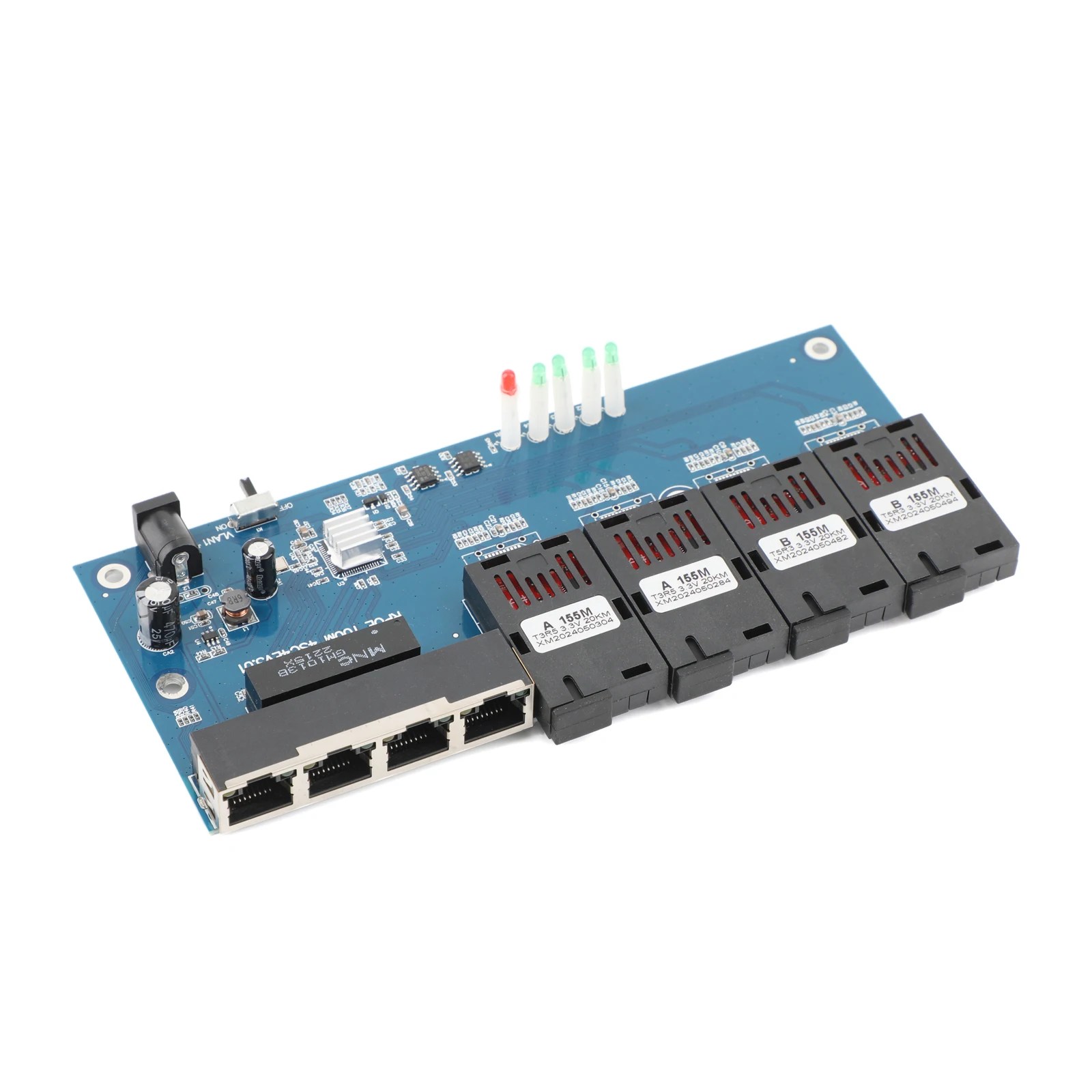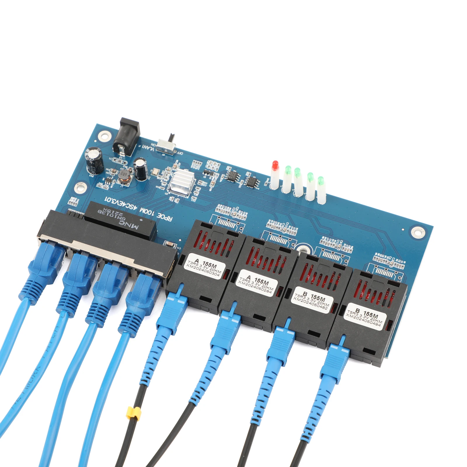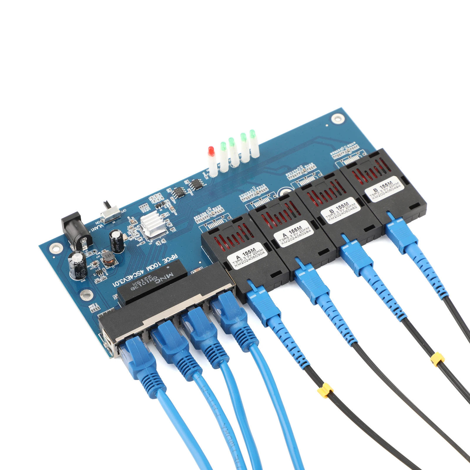 Comprar Conmutador Ethernet PCBA de 10M/100M, convertidor de medios de fibra óptica 4 RJ45 a 4 conectores ópticos SC 2A + 2B, rango de 1310nm/1550nm 20KM
