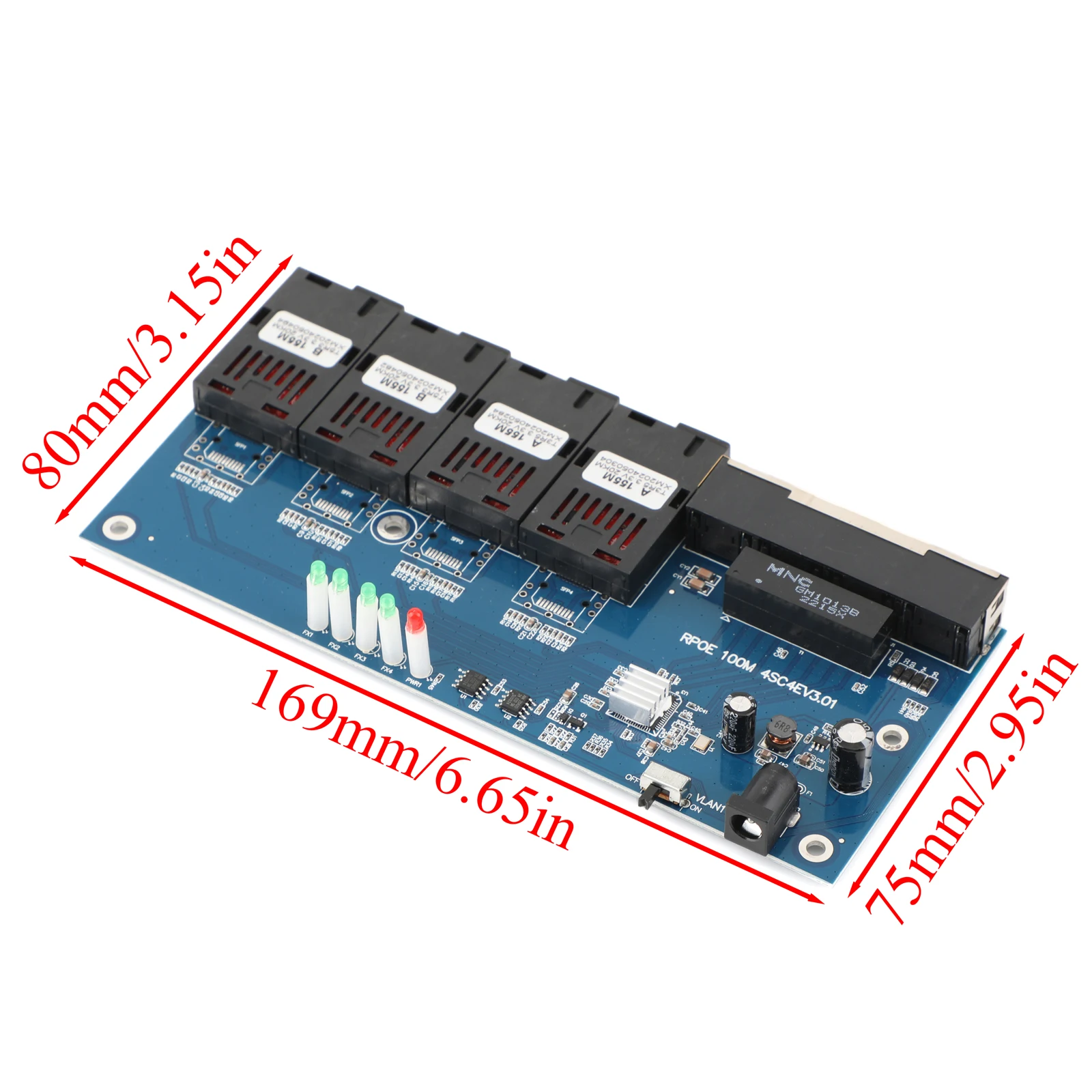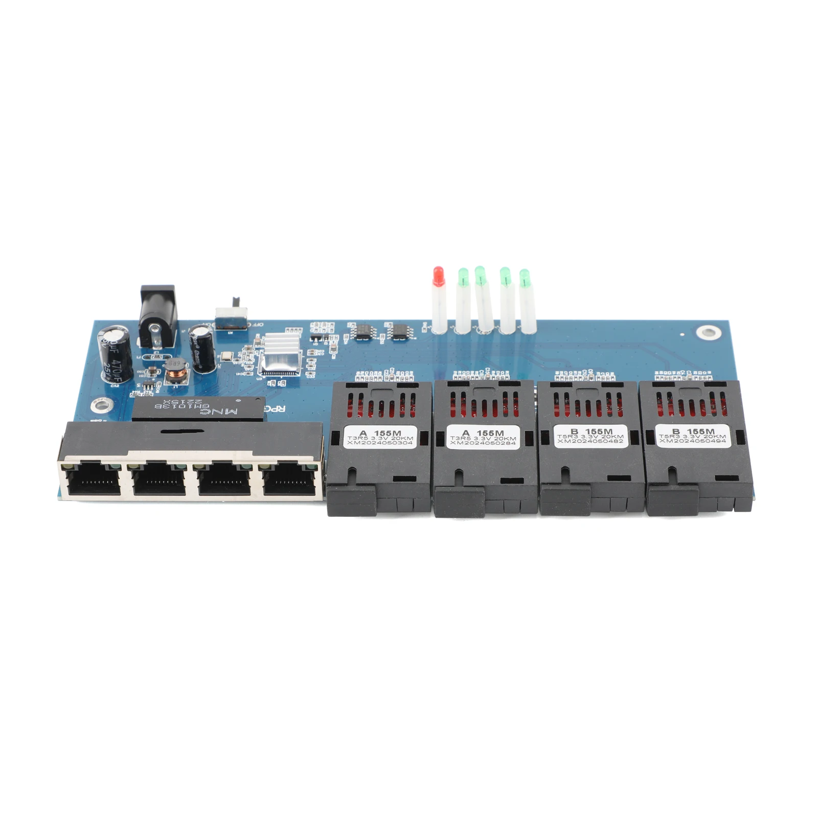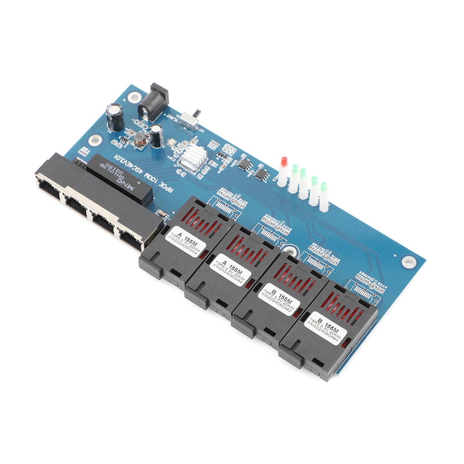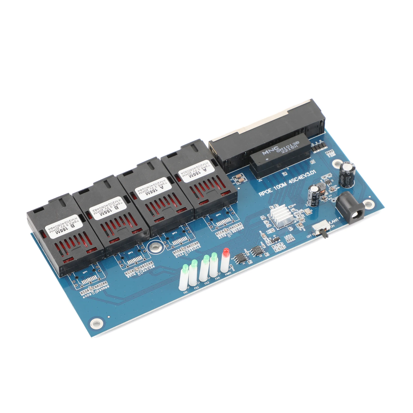 Conmutador Ethernet 10M/100M PCBA - Convertidor de medios de fibra óptica 4 RJ45 a 4 SC 2A+2B Conectores ópticos -1310nm/1550nm 20KM Alcance
