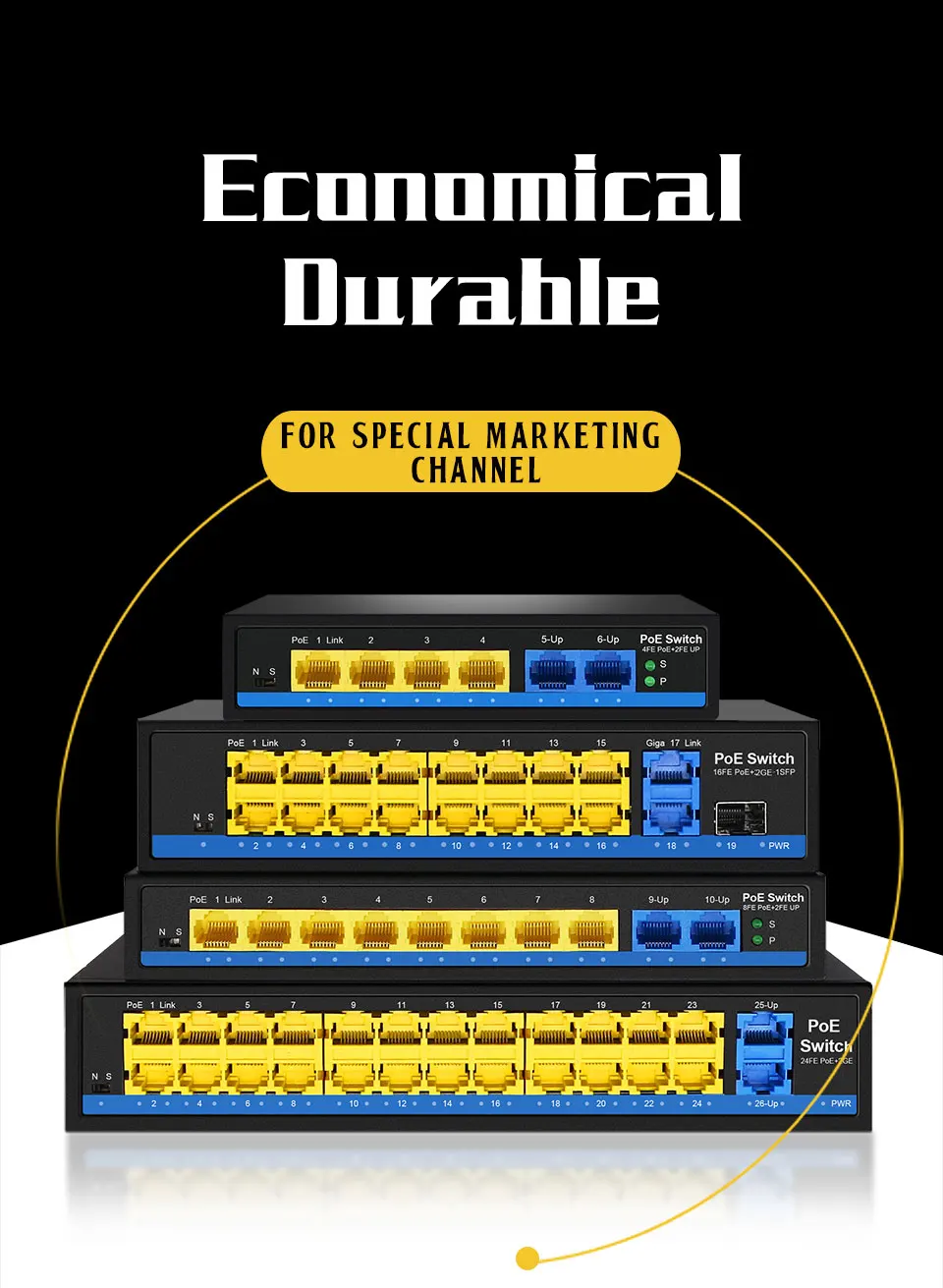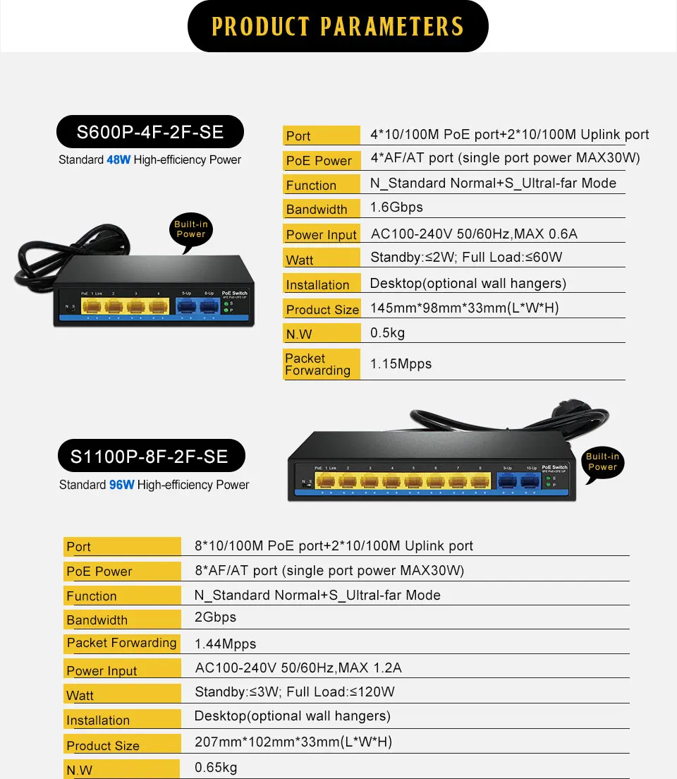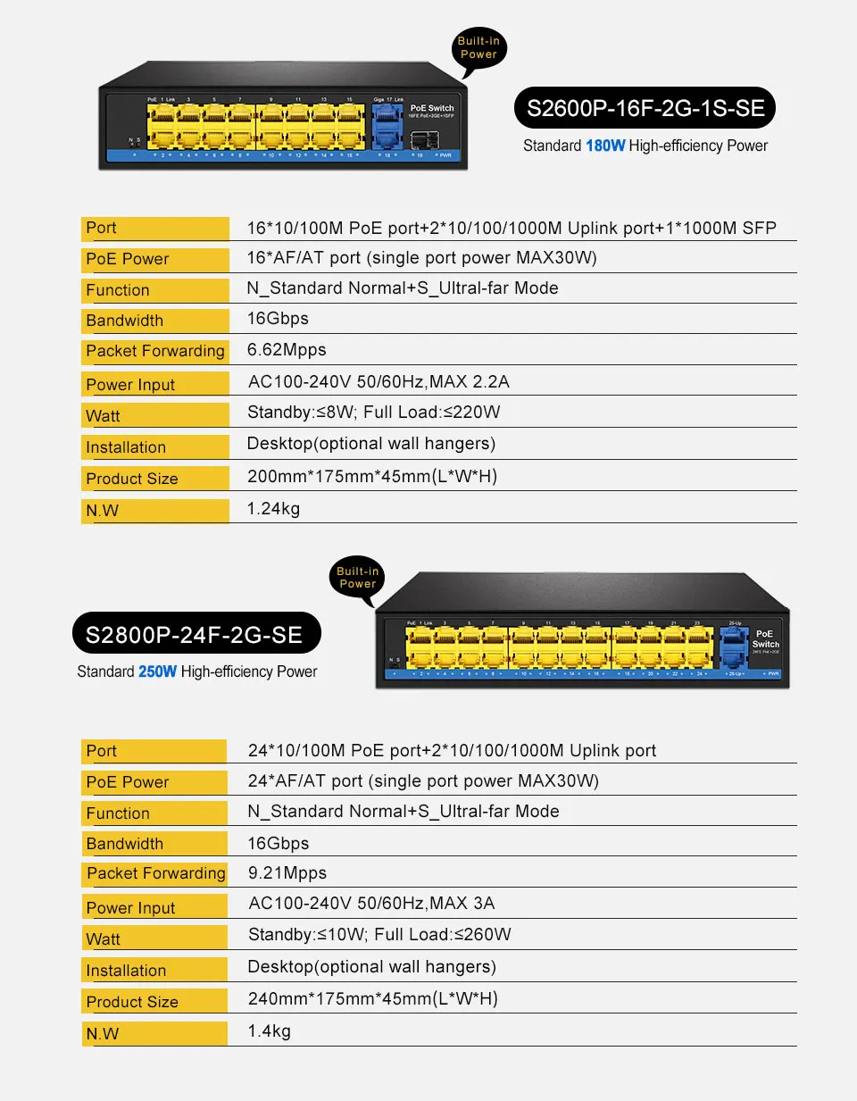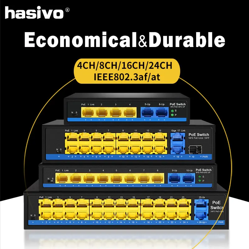 Comprar Conmutador Ethernet POE de 4, 8 y 16 puertos con puerto estándar IEEE 802,3 af/at 2 Gigabit uplink + 1 SFP 250m