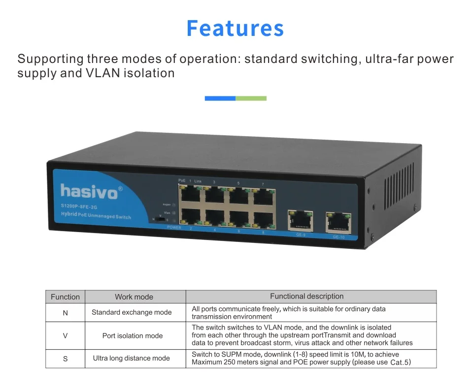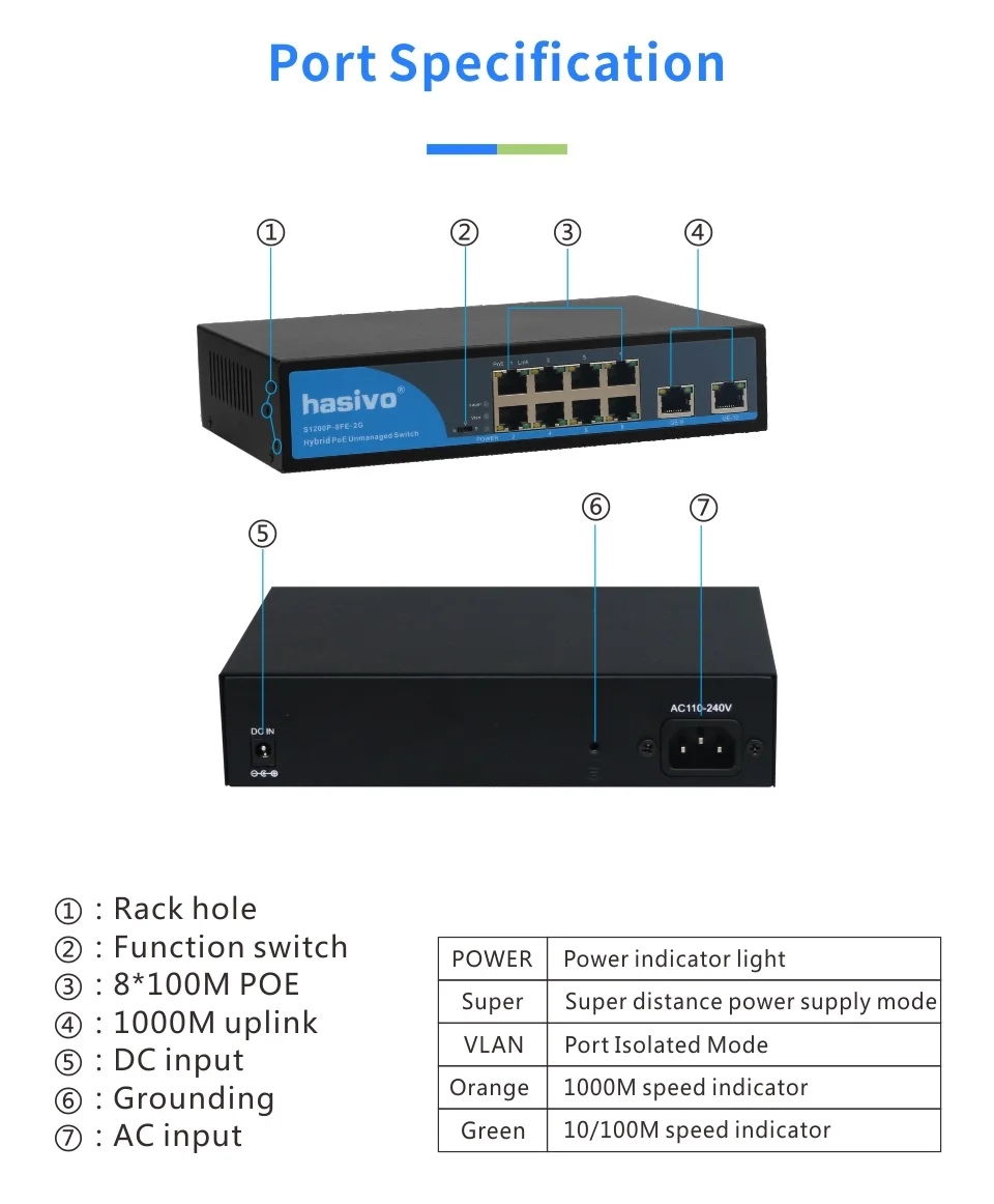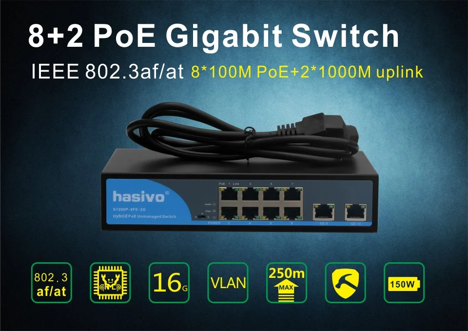 Comprar Conmutador Ethernet PoE de 8 puertos RJ45, 2 puertos, Gigabit, 150W