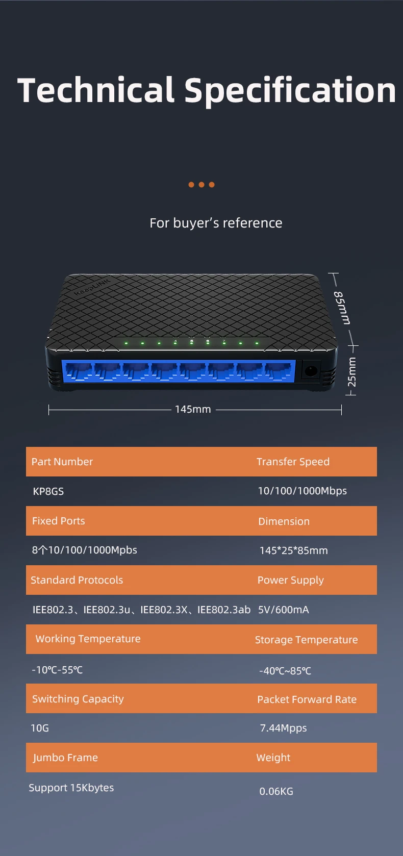 Comprar Conmutador Ethernet de red no gestionado de plástico Gigabit completo de 8 puertos