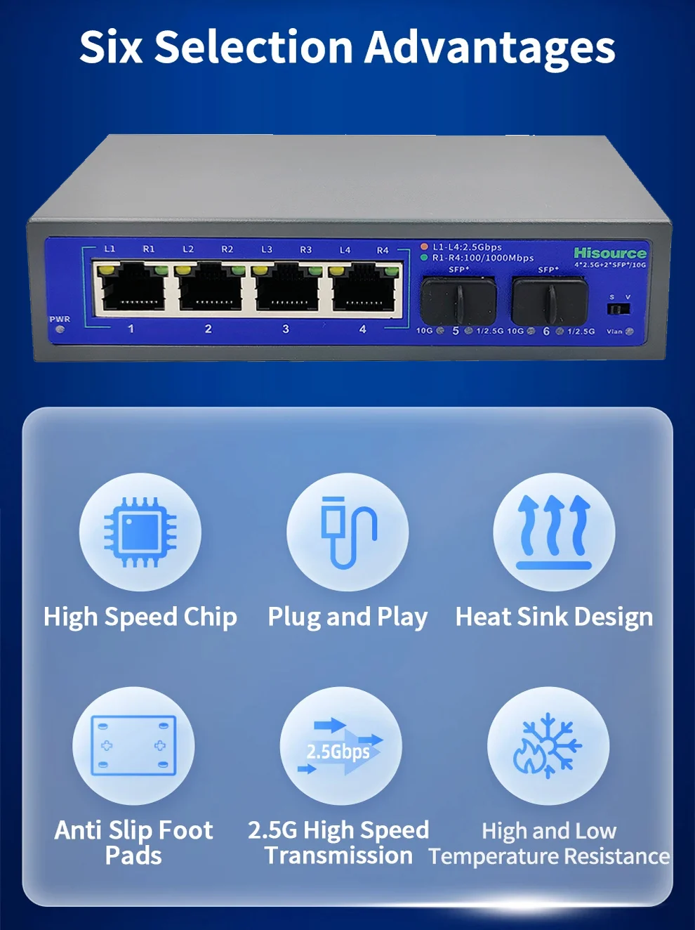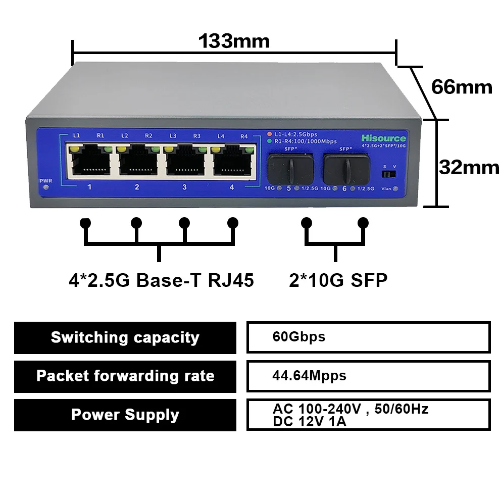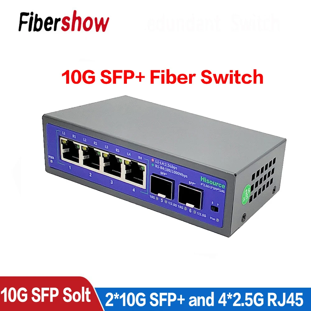 Comprar Conmutador de fibra 10G SFP + 2,5 Gbps Ethernet 4 puertos 2500Mbps conmutador de red ranura Hub divisor de Internet Plug and Play 10 gigabit