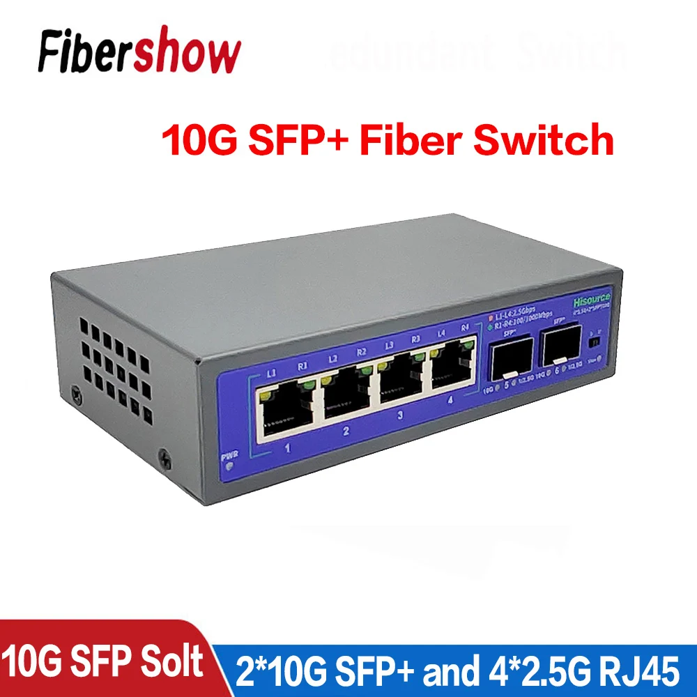 Comprar Conmutador de fibra 10G SFP + 2,5 Gbps Ethernet 4 puertos 2500Mbps conmutador de red ranura Hub divisor de Internet Plug and Play 10 gigabit