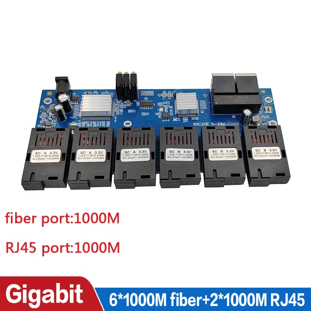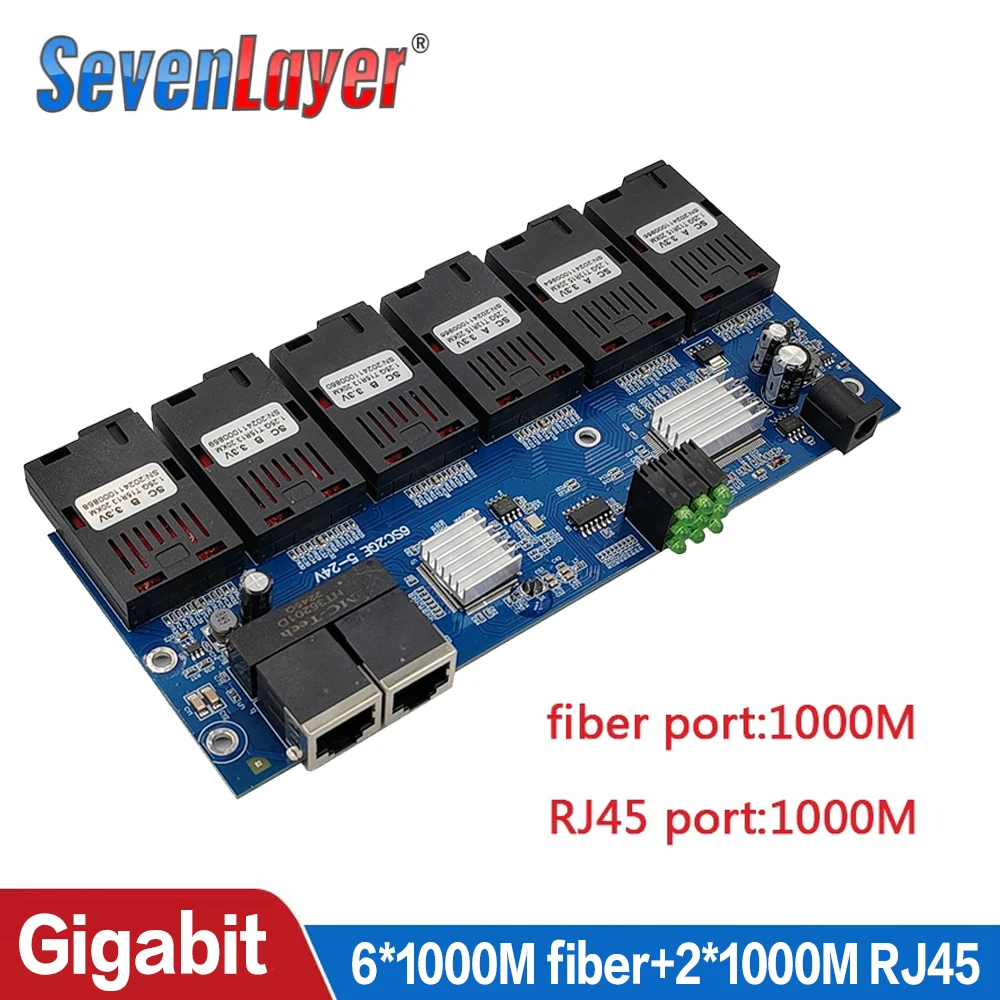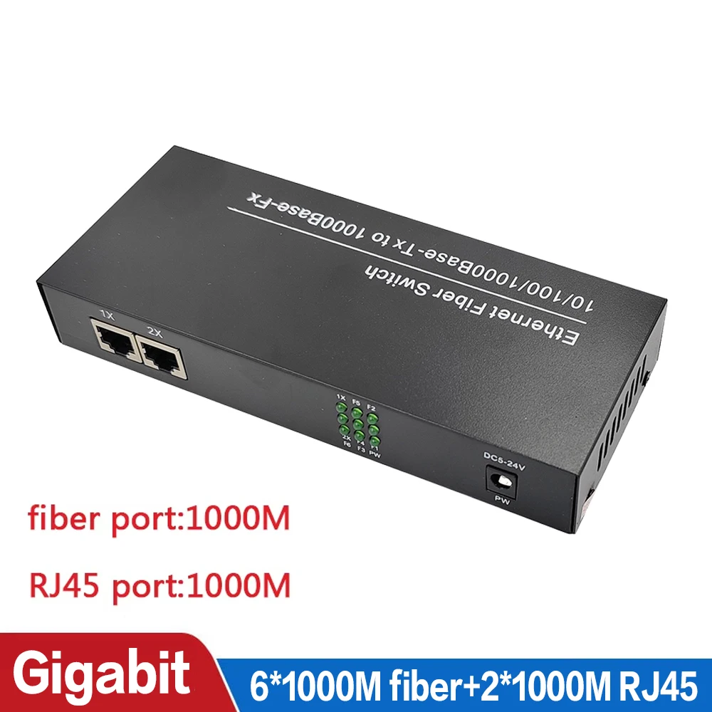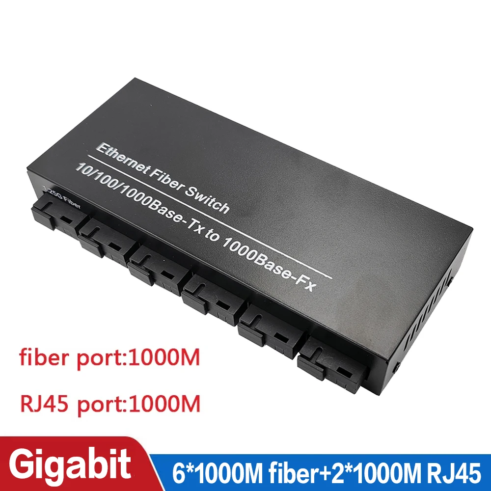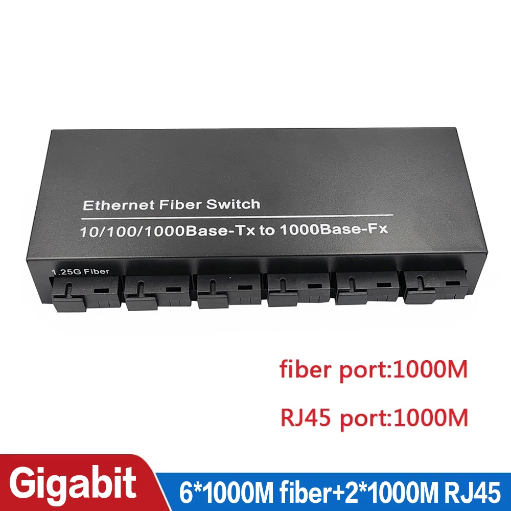 Comprar Conmutador de fibra óptica 6F2E, interruptor Gigabit Ethernet 6*1000M 2*1000M RJ45 UTP SC, convertidor de medios 6SC 2RJ45