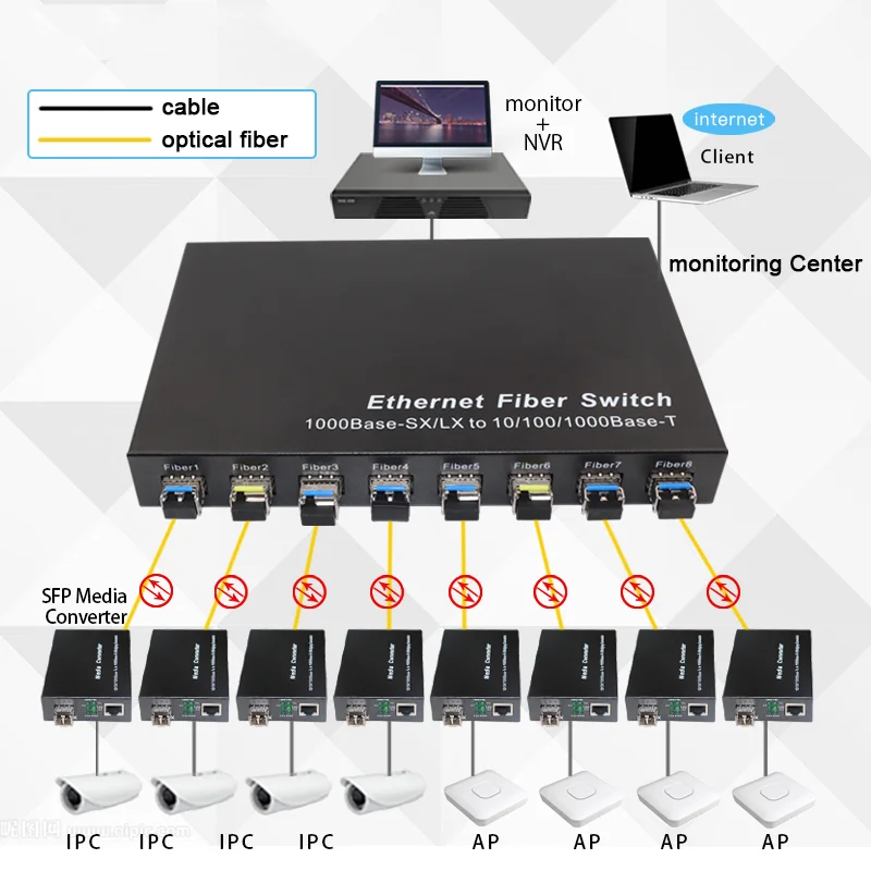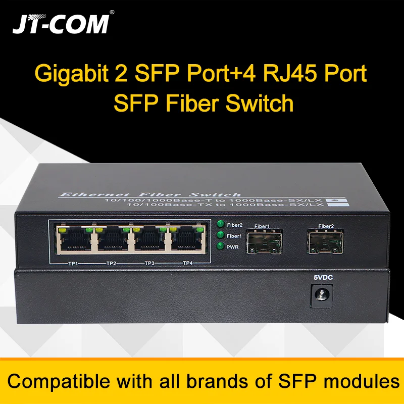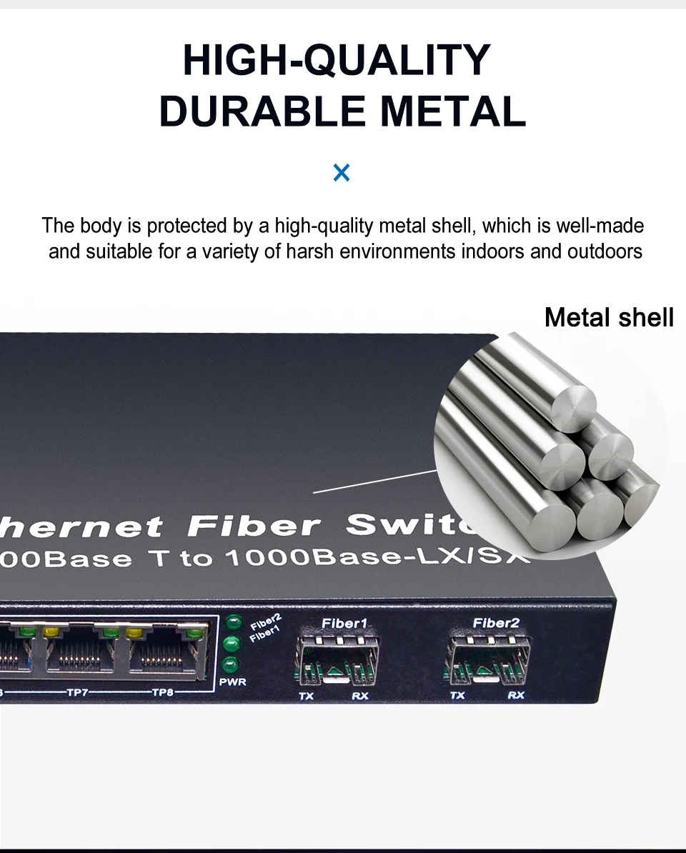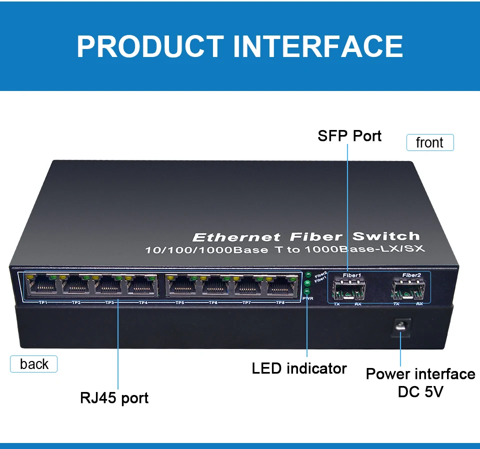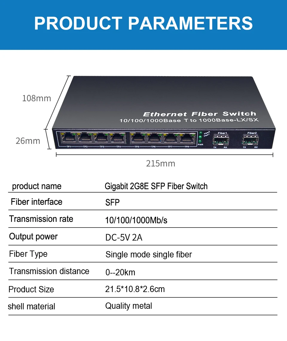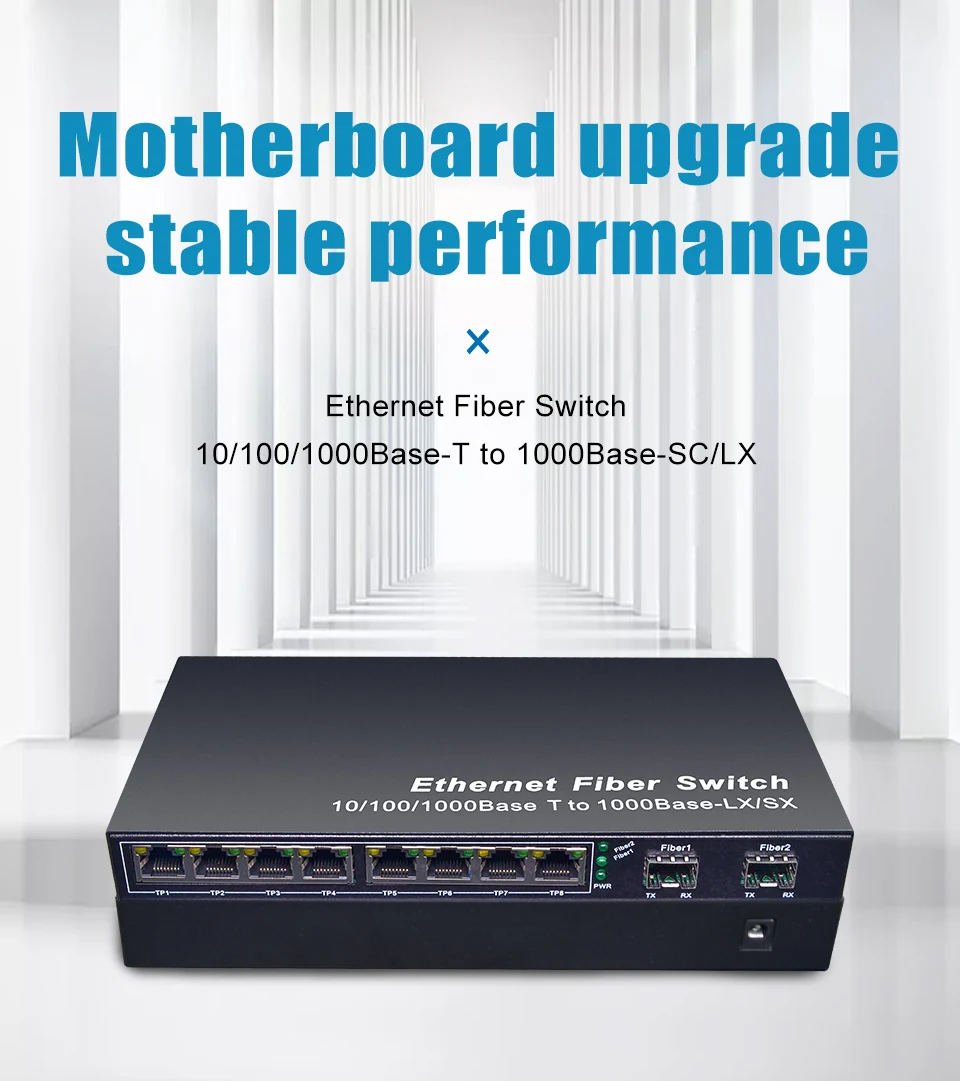Comprar Conmutador de fibra SFP de red Gigabit, convertidor de medios SFP de 1000Mbps, 2 puertos de fibra SFP y 8 puertos RJ45, conmutador Ethernet de fibra 2G8E