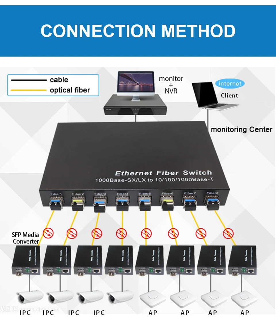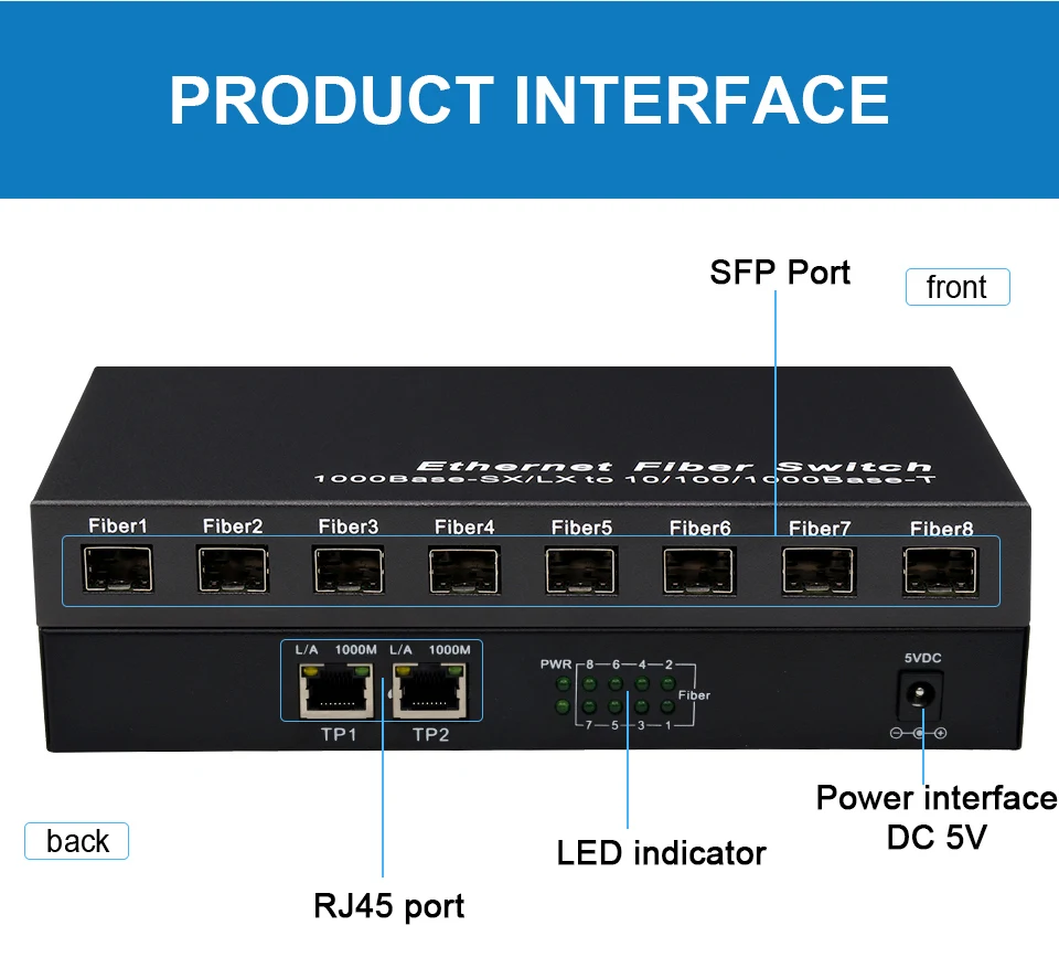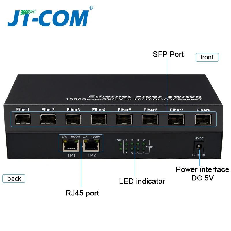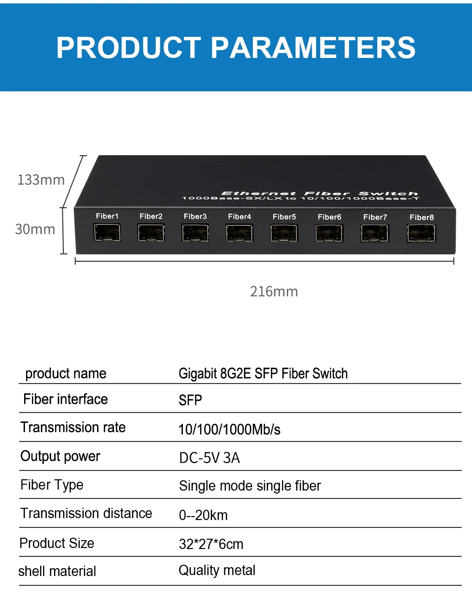 Comprar Conmutador de fibra SFP de red Gigabit, convertidor de medios SFP de 1000Mbps, 8 puertos de fibra SFP y 2 puertos RJ45, conmutador Ethernet de fibra 8G2E