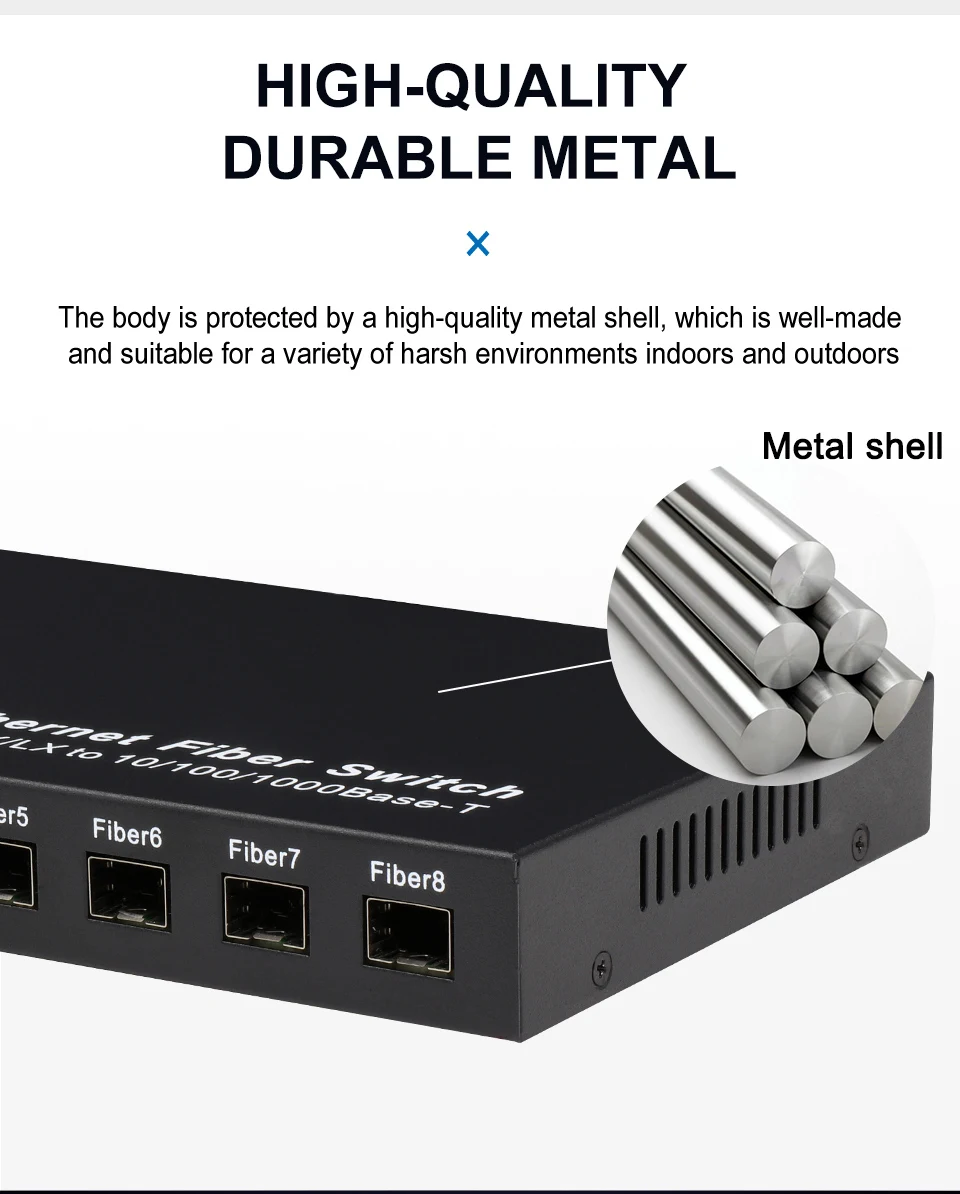 Conmutador de fibra SFP de red Gigabit, convertidor de medios SFP de 1000Mbps, 8 puertos de fibra SFP y 2 puertos RJ45, conmutador Ethernet de fibra 8G2E