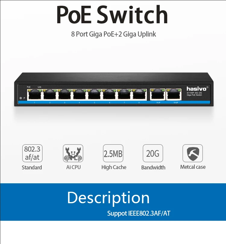 IEEE802.3af/AT, Puerto PoE MAX 30W,
