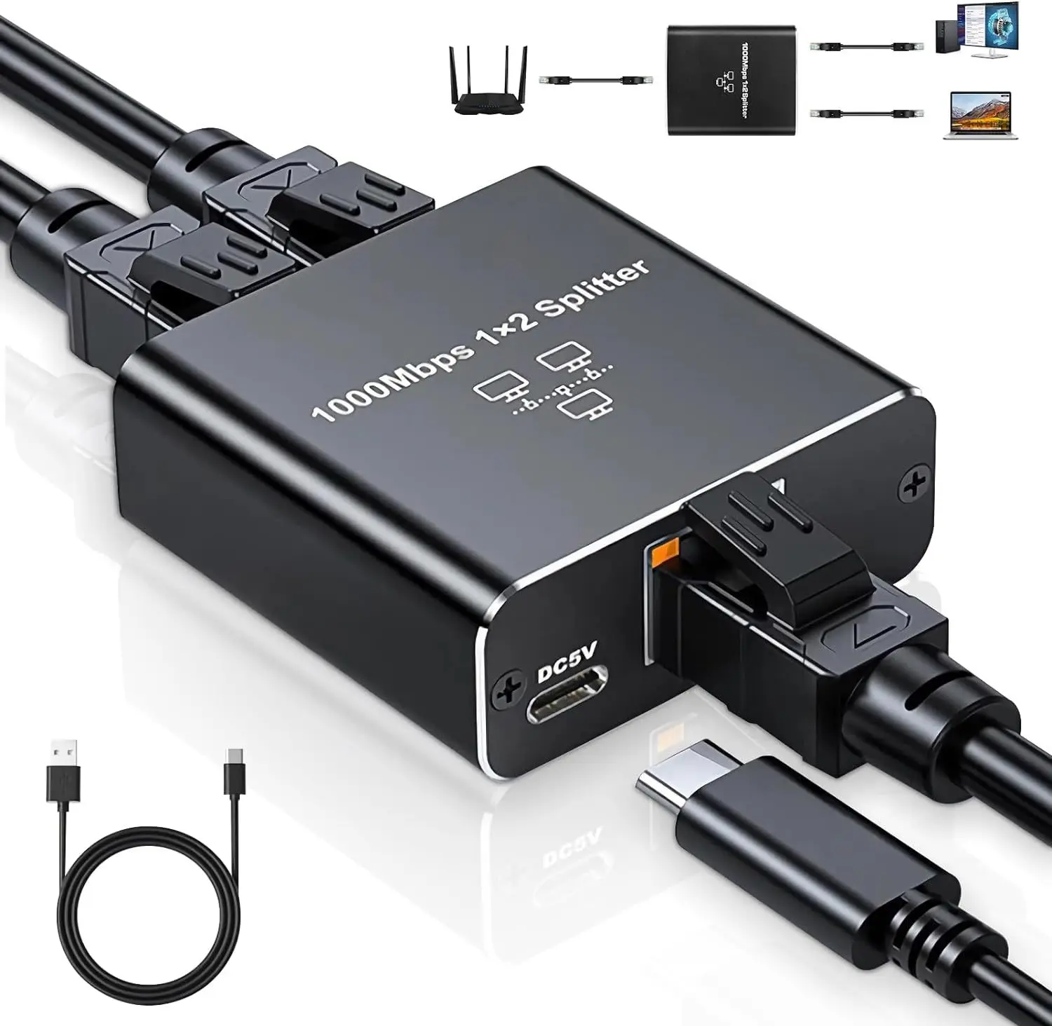 Comprar Conmutador Gigabit Ethernet, divisor Rj45, adaptador de extensión LAN, 1 a 2, conector de red de 1000Mbps para PC, portátil, TV Box, enrutador