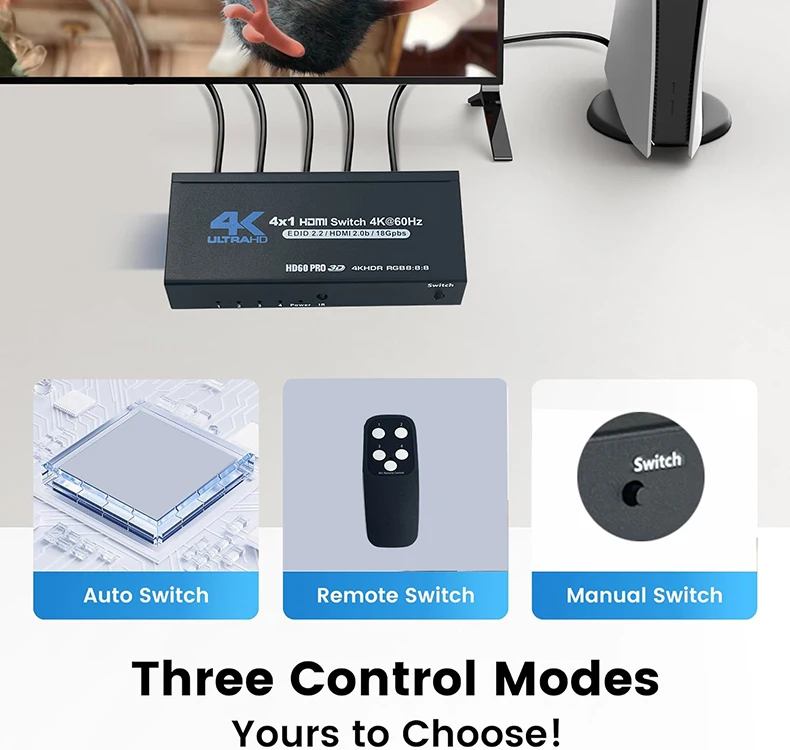Comprar Conmutador HDMI 2,0 7 en 1 salida 4K 60Hz conmutador HDMI 5X1/4X1 HDR HDMI 2,0 conmutador remoto para PS5 Xbox Series X NS Switch PC 4K HDTV
