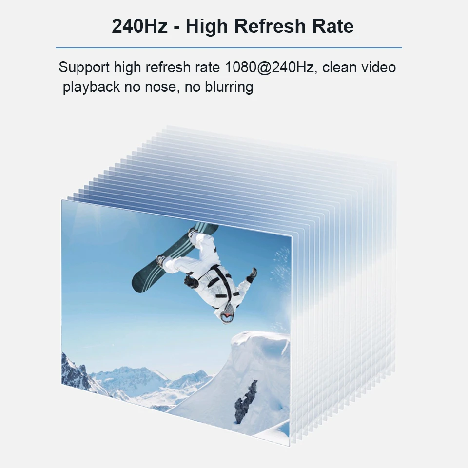 RESOLUCIÓN 8K ULTRA HD: 4 puertos HDMI Hub compatible con salida de vídeo HDMI de hasta 8K @ 60Hz, 4K @ 120Hz, 1080P @ 240Hz, 4K/60/24Hz, 2K/60/30/24Hz, 3D, 1080P, 1080i, 720P, 720i, 576P, 576i, 480P; velocidad de transmisión de hasta 48Gbps y es compatible con todos los estándares HDMI anteriores.