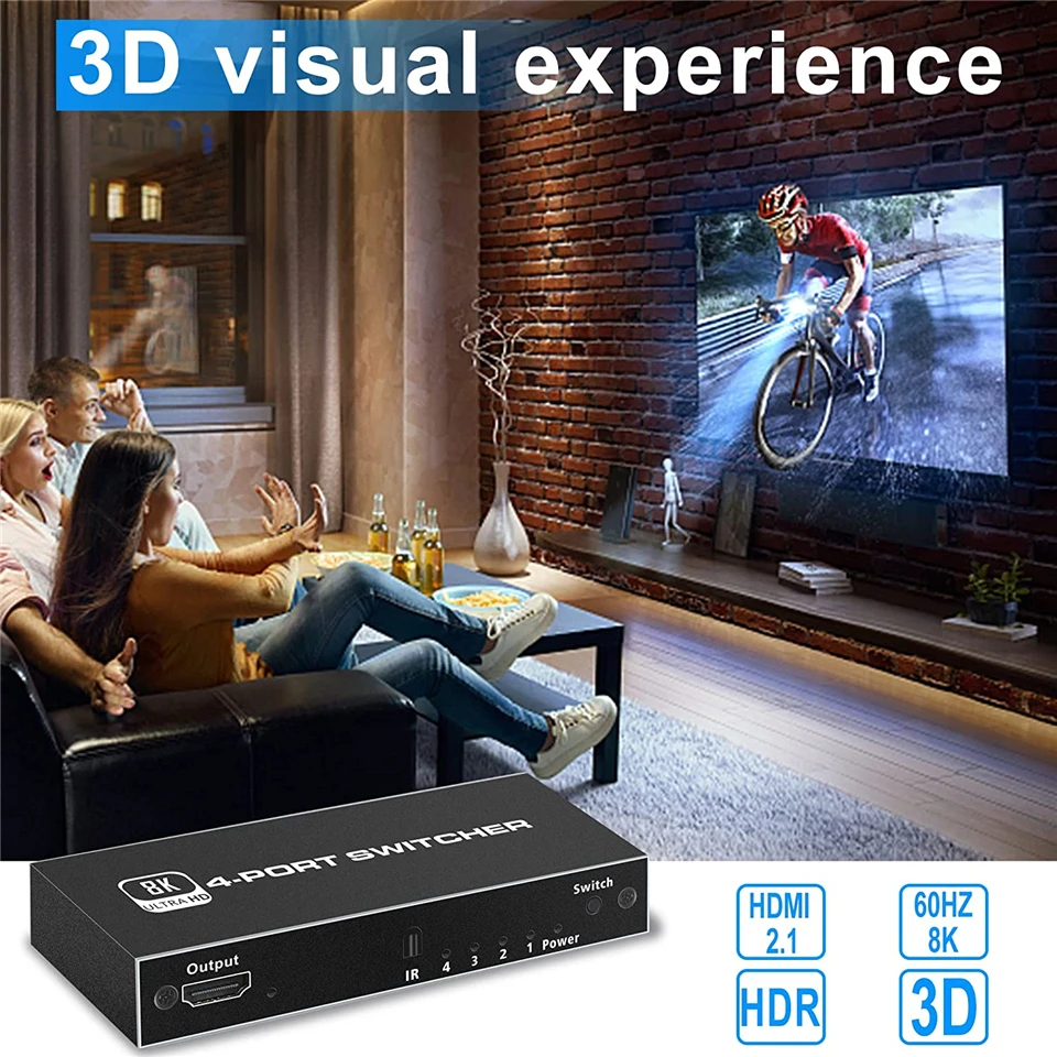 Comprar Conmutador HDMI 2024, compatible con 4K, 2,1Hz, 4 en 1, salida 2 en 1, 8K, 60Hz, divisor de interruptor, adaptador remoto IR para proyector PS5 y PS4, 120