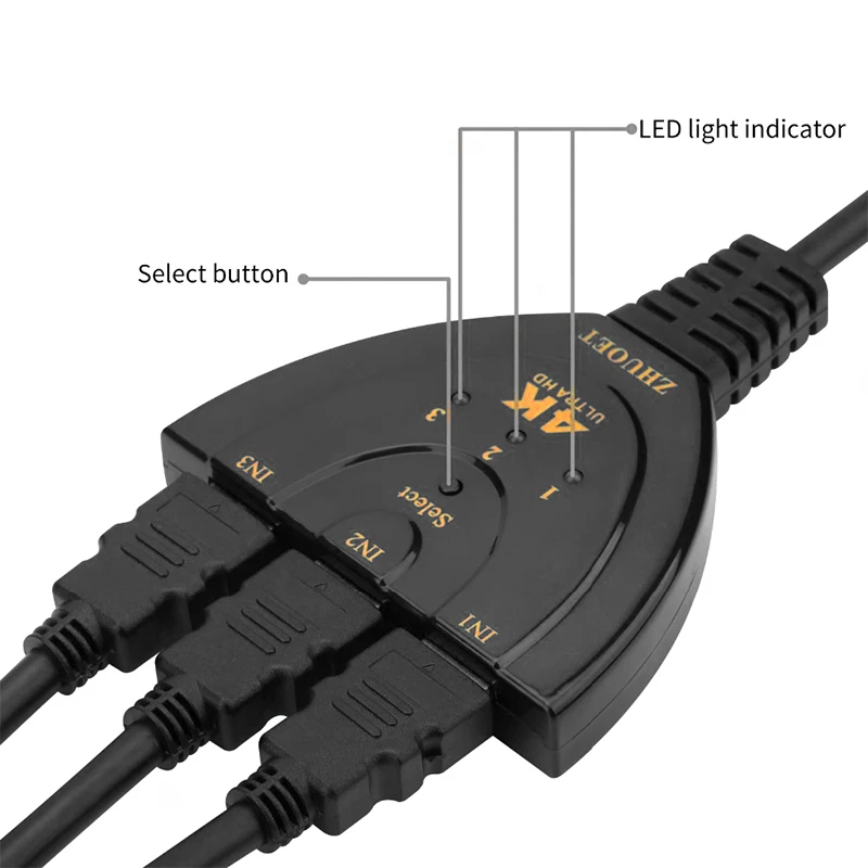 Nombre del artículo: Selector de conmutador HDMI de 3 puertos con control remoto