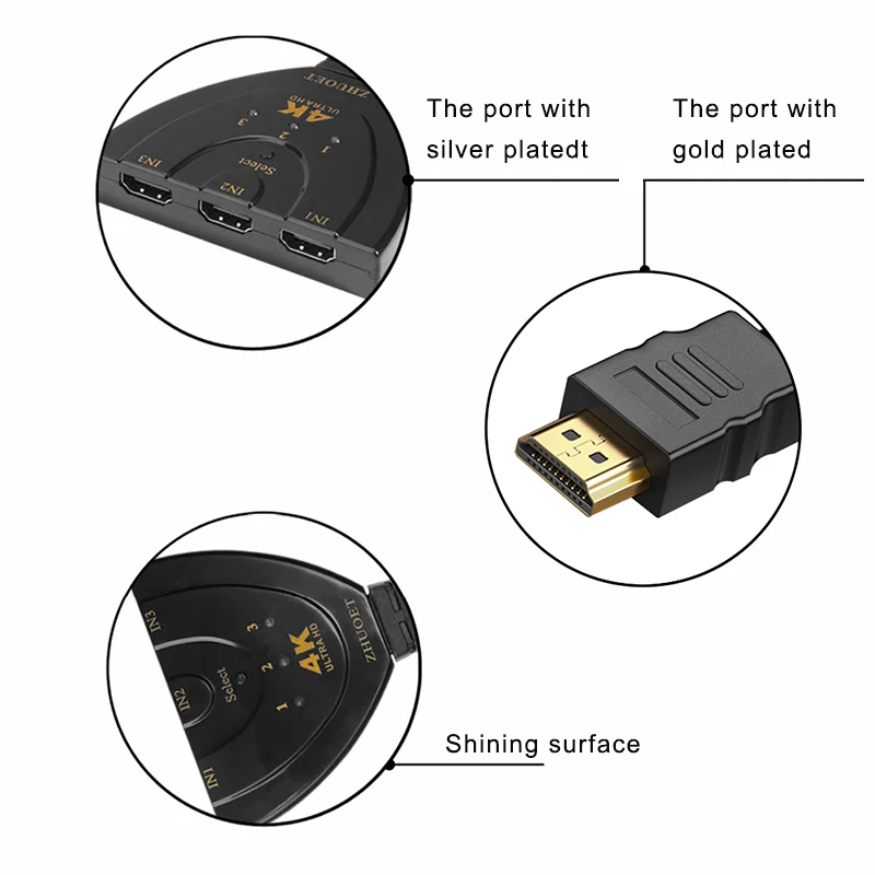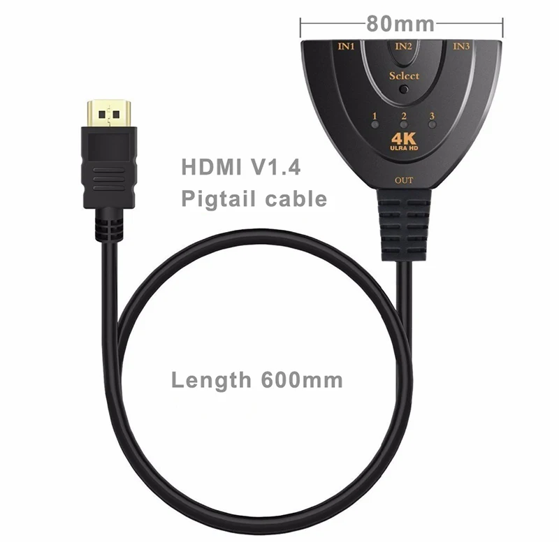 Comprar Conmutador HDMI 3x1 HDMI 3 entrada 1 salida 4k 1080P 3D adaptador divisor para XBOX 360 PS4 Smart Android HDTV 4K 3 en 1 adaptador de salida