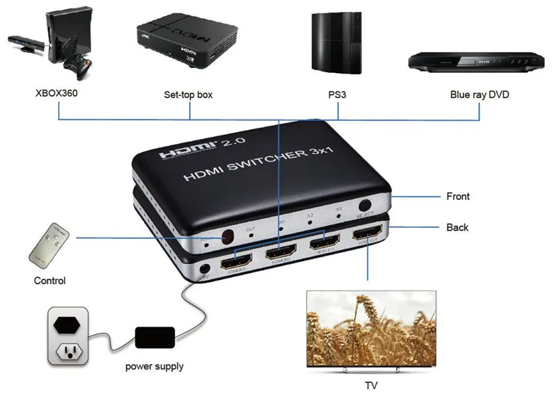 Comprar Conmutador HDMI 3x1 HDMI2.0, convertidor de Audio y vídeo 3 en 1, pantalla de salida 1080p, 4K, 60HZ, para PS4, cámara, DVD, PC, Monitor de TV