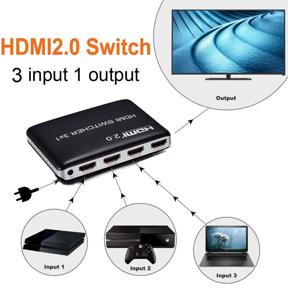 Comprar Conmutador HDMI 3x1 HDMI2.0, convertidor de Audio y vídeo 3 en 1, pantalla de salida 1080p, 4K, 60HZ, para PS4, cámara, DVD, PC, Monitor de TV