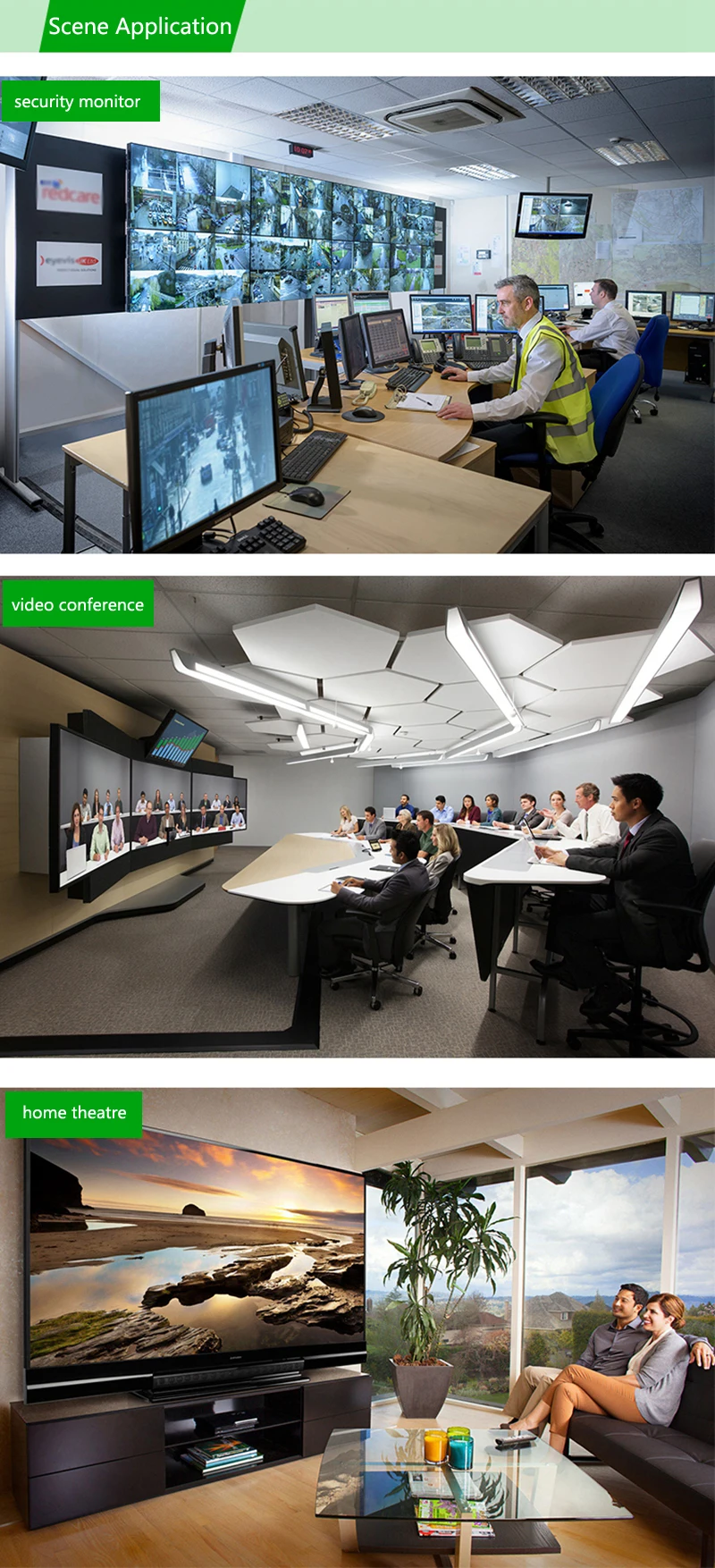 Admite una sola pantalla de alta definición y múltiples fuentes de señal HD de salida, como reproductores de DVD, receptores A/V y decodificadores, reproductores de Bluray Virgen Freesat 360 Sky Box, videocámara con proyector HDTV para DVD, computadora portátil HTPC.