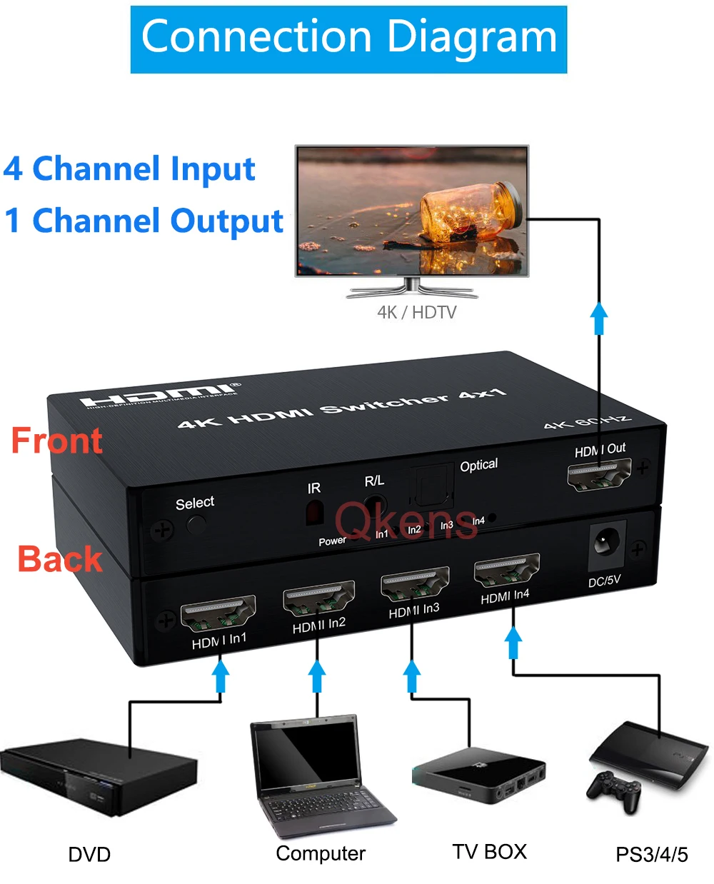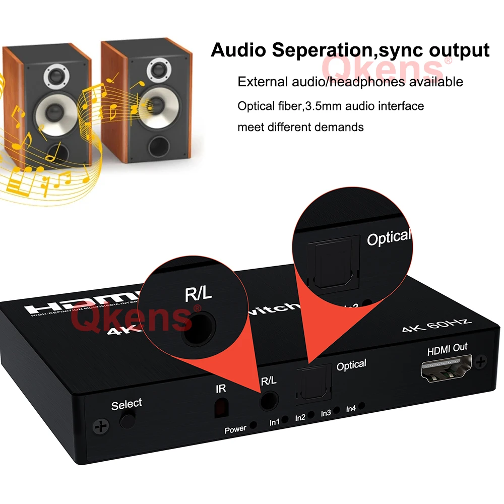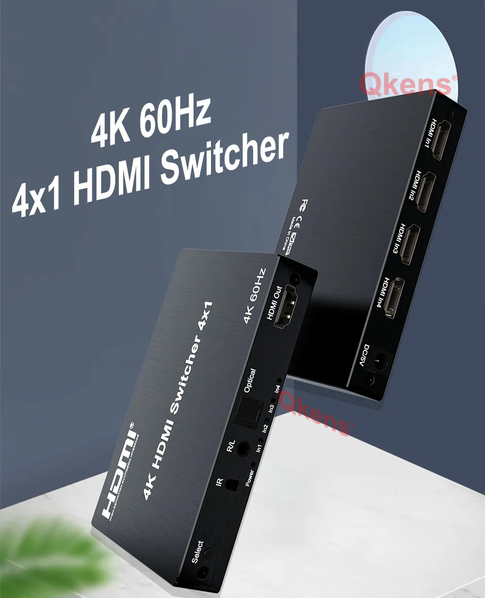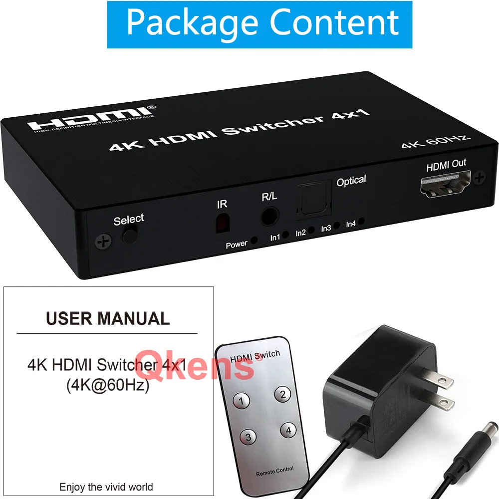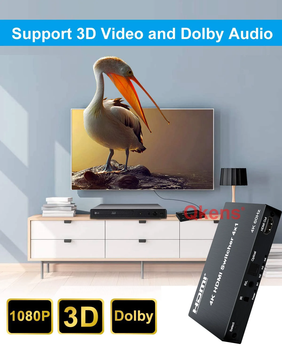Comprar Conmutador HDMI 4K 60Hz 4x1, 4 en 1 salida, interruptor HDMI R/L, Extractor de Audio óptico, convertidor de vídeo para cámara PS4, PC a proyector de TV