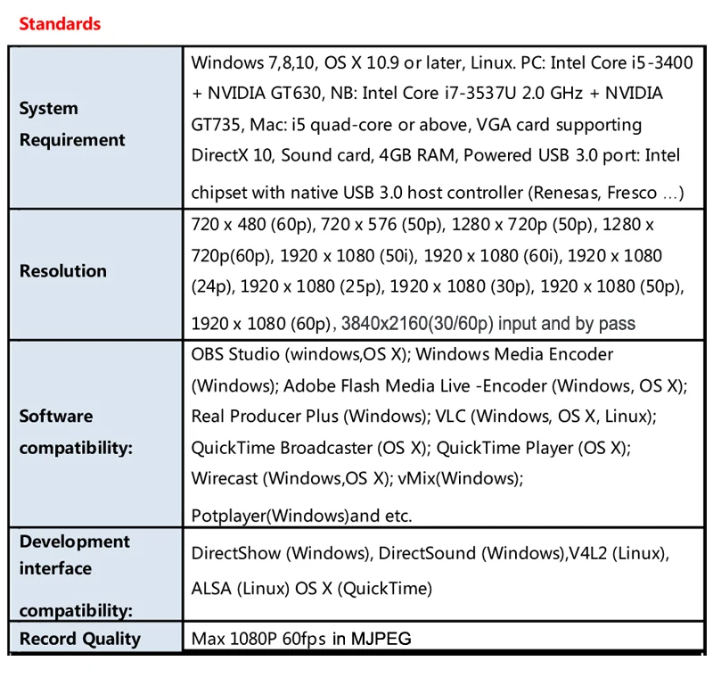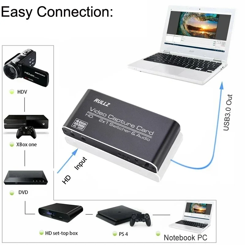 transmisión de vídeo en vivo; El puerto USB 3.0 puede capturar señales de hasta 1080p 60fps, el puerto HDMI puede admitir entrada 4k 60fps