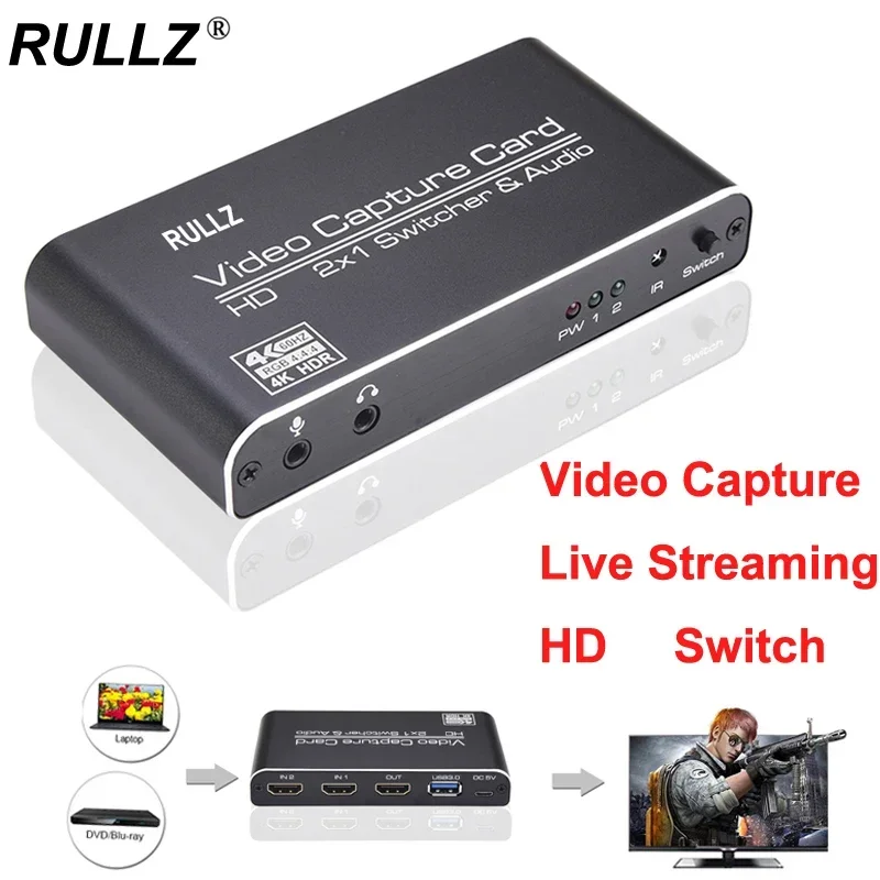 Comprar Conmutador HDMI 4K60hz Loop 2x1, tarjeta de captura de Audio y vídeo 1080p60, placa de grabación USB 3,0 para cámara, portátil, Juegos de PC, transmisión en vivo