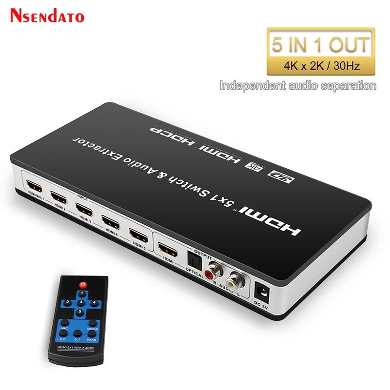 Comprar Conmutador HDMI 5x1 con Extractor de Audio, conmutador HDMI 5 en 1, salida 4K con R/L, Extractor de Audio ARC con control remoto IR
